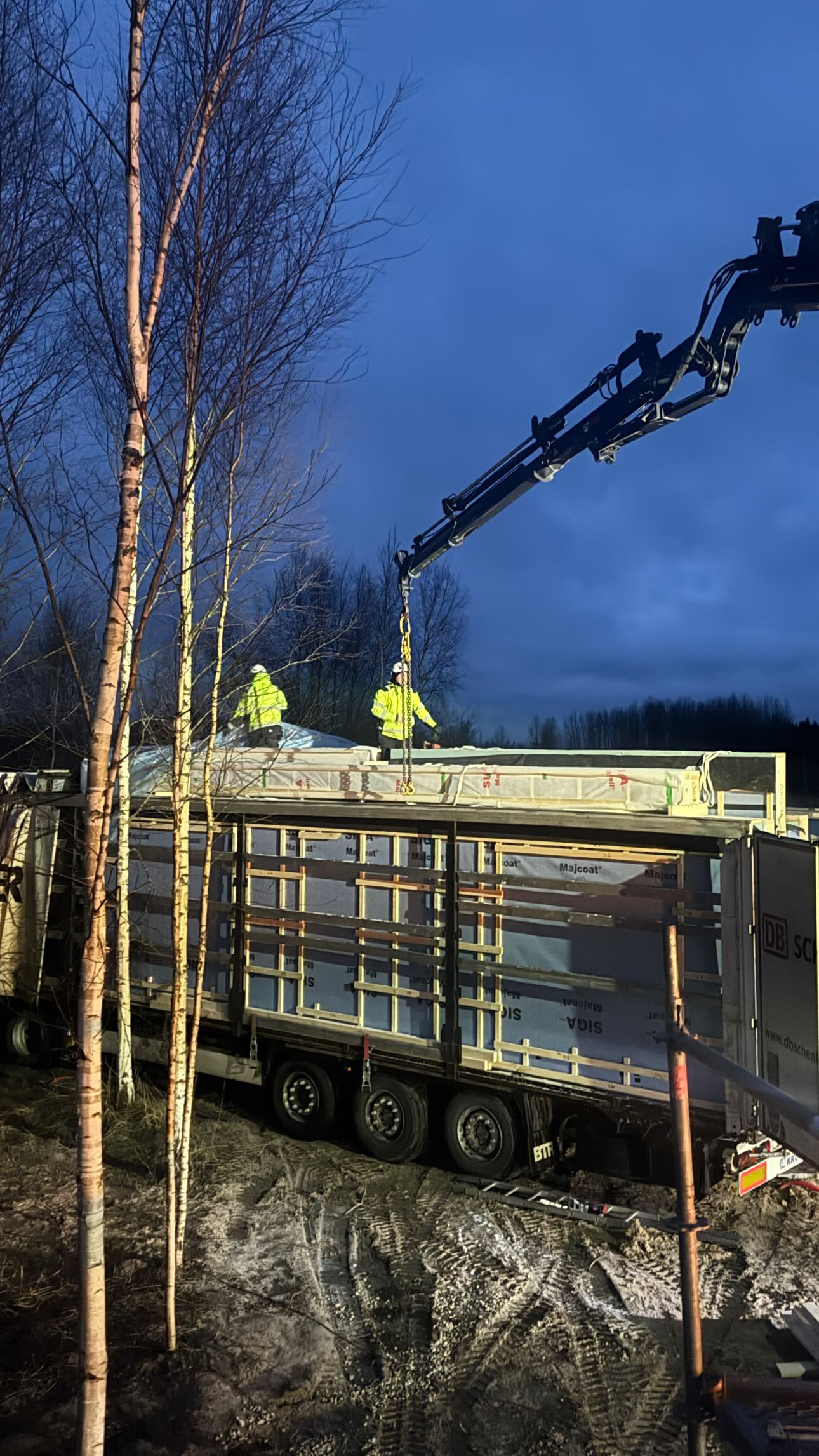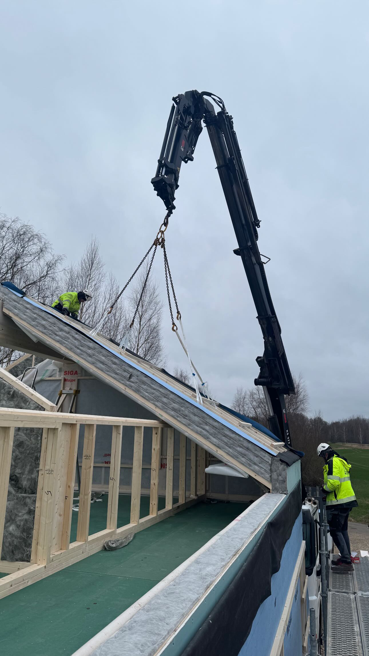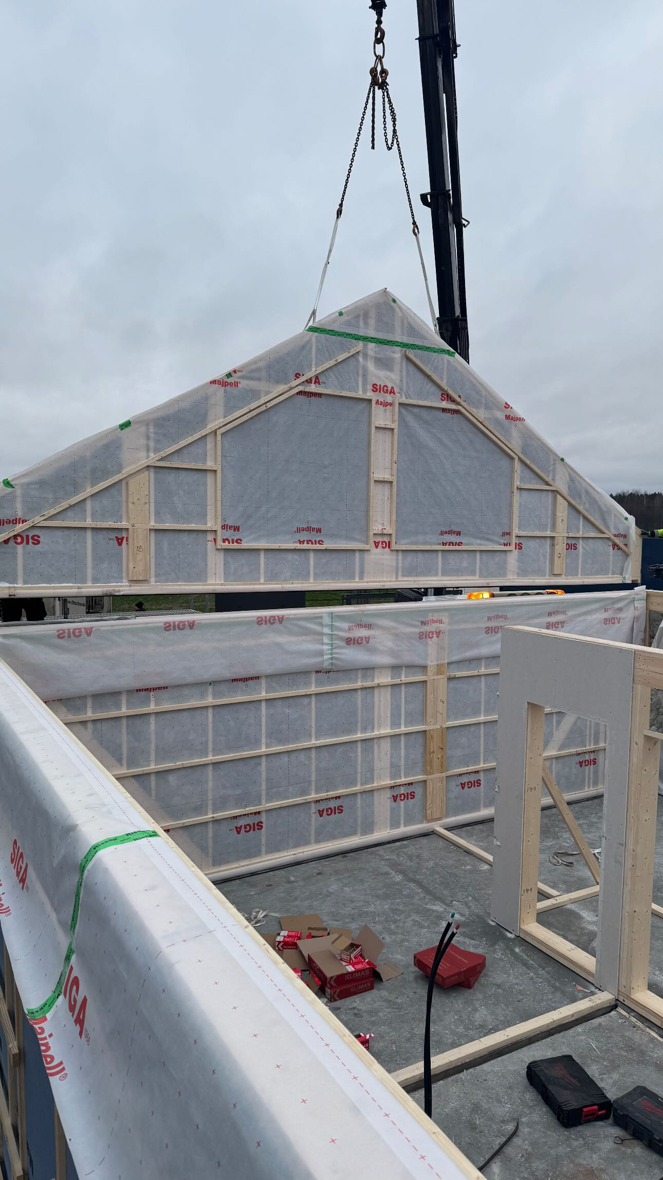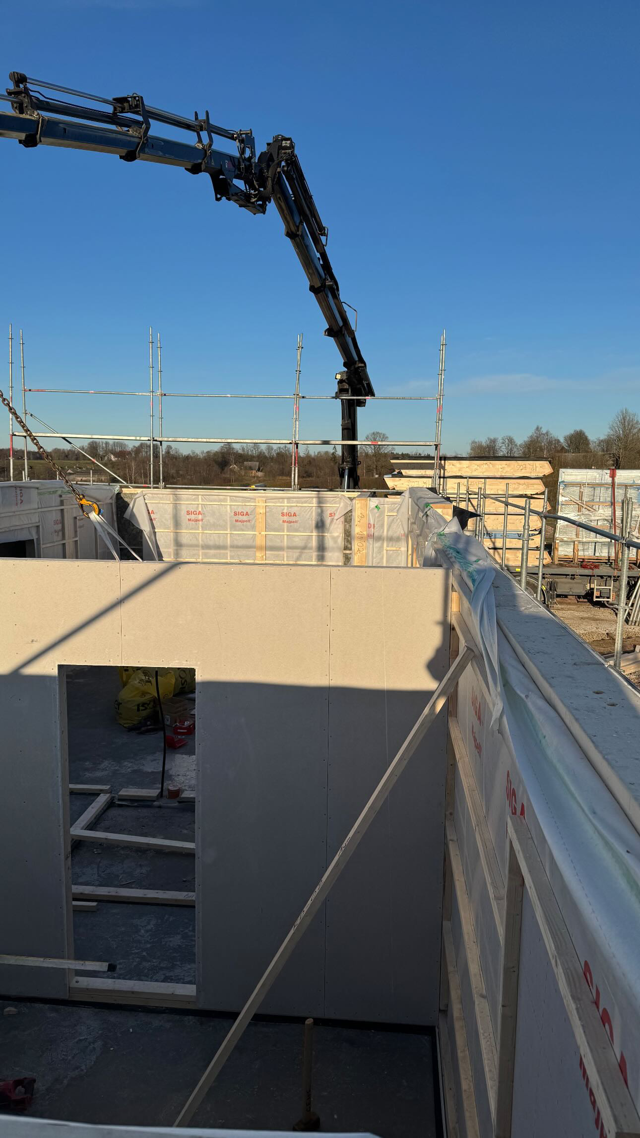 Privātmājas montāžas process sākas ar to, ka rūpnīcā precīzi izgatavotās konstrukcijas tiek transportētas uz būvlaukumu. Pēc to nogādāšanas speciālisti rūpīgi veic montāžas darbus, soli pa solim saliekot visas konstrukcijas, līdz tiek izveidota pilnībā pabeigta un dzīvošanai gatava ēka.