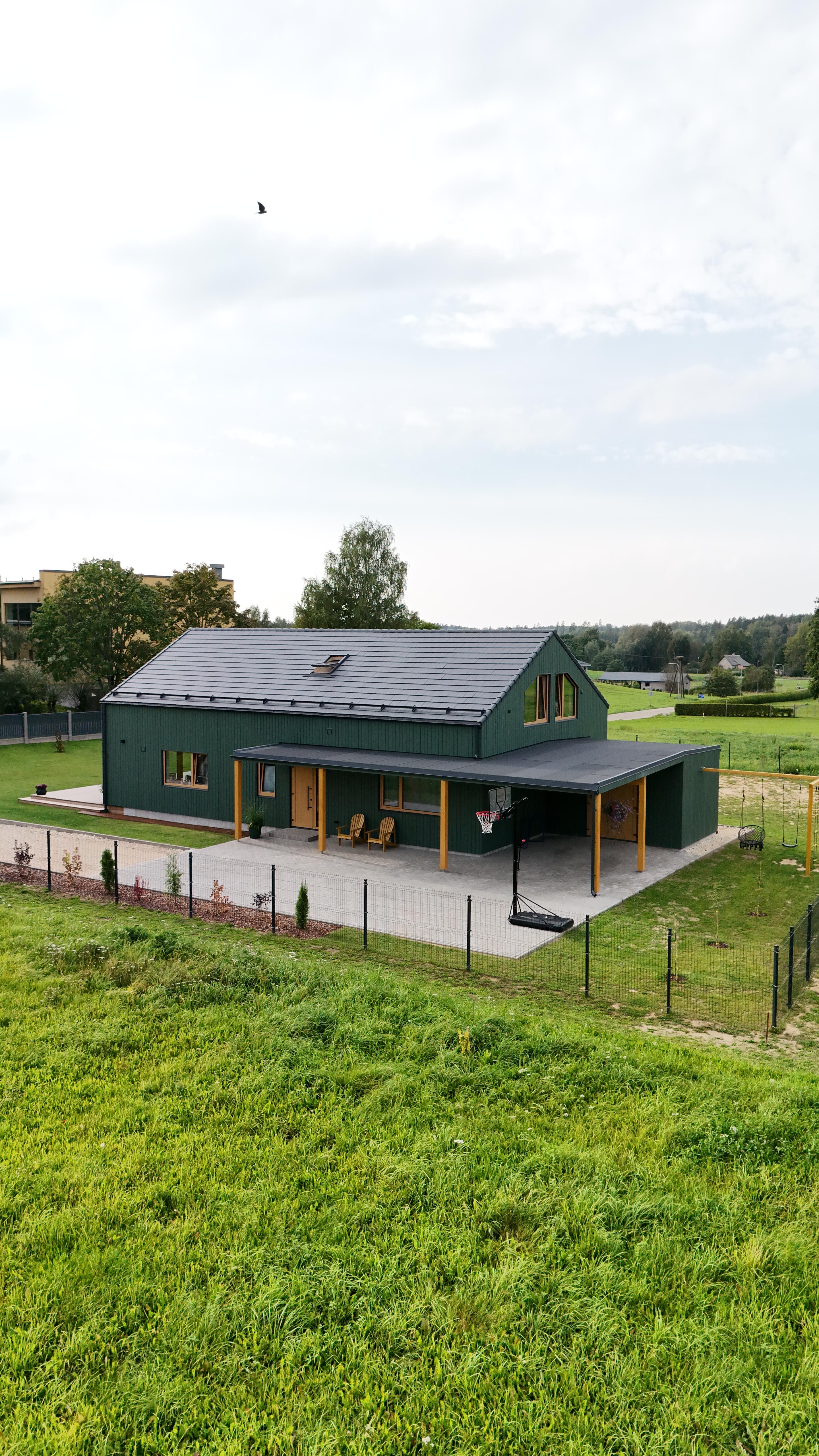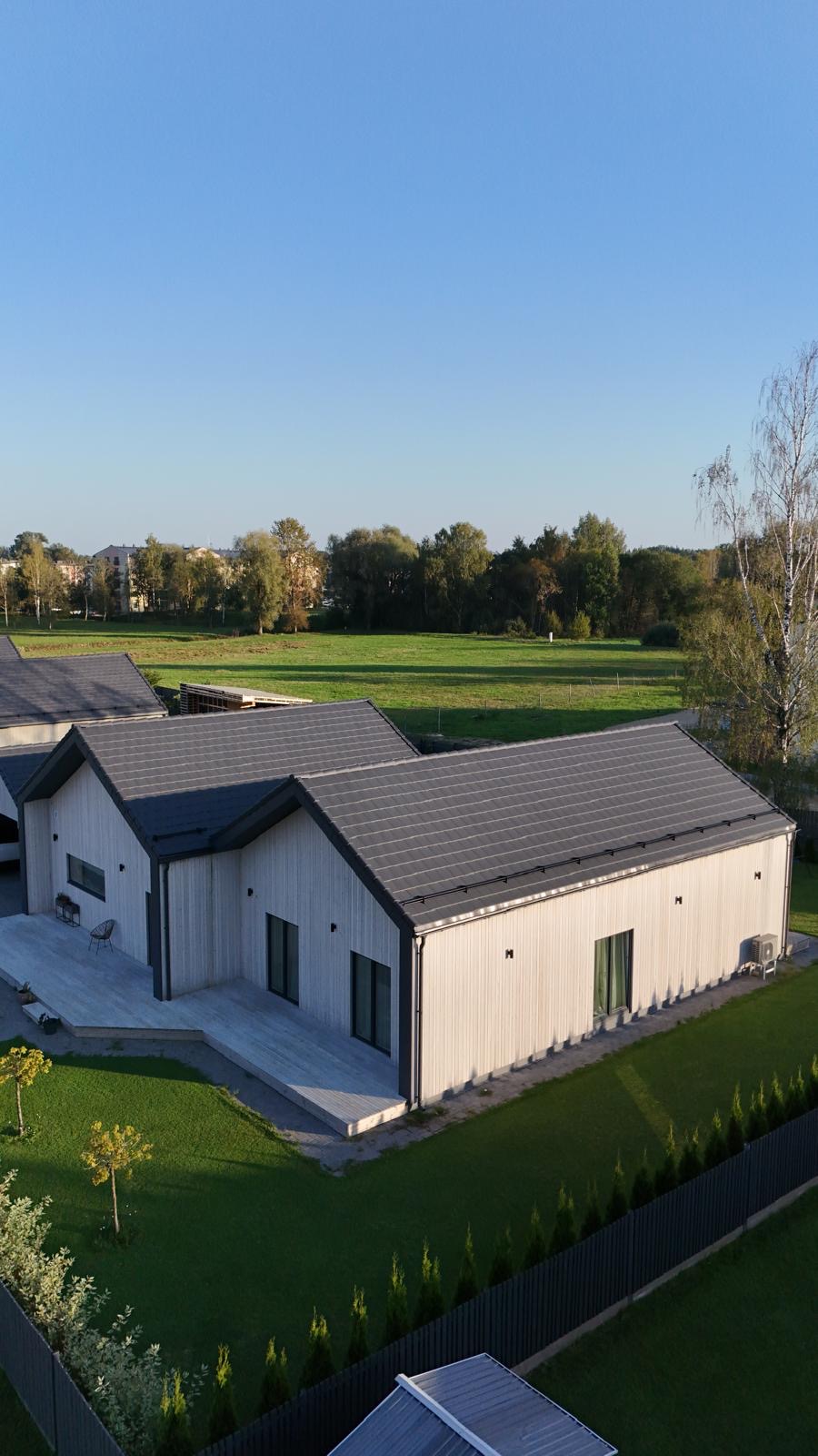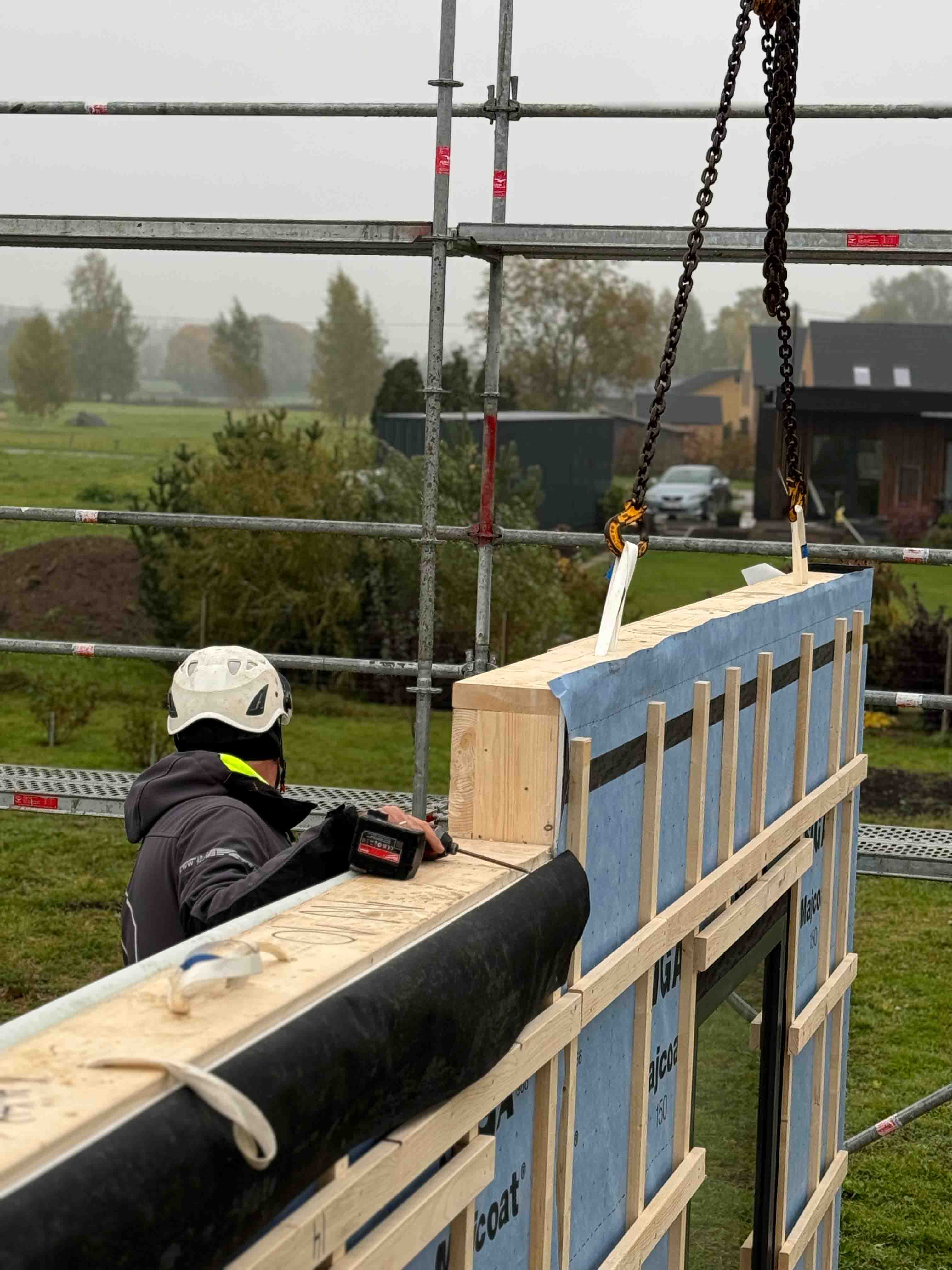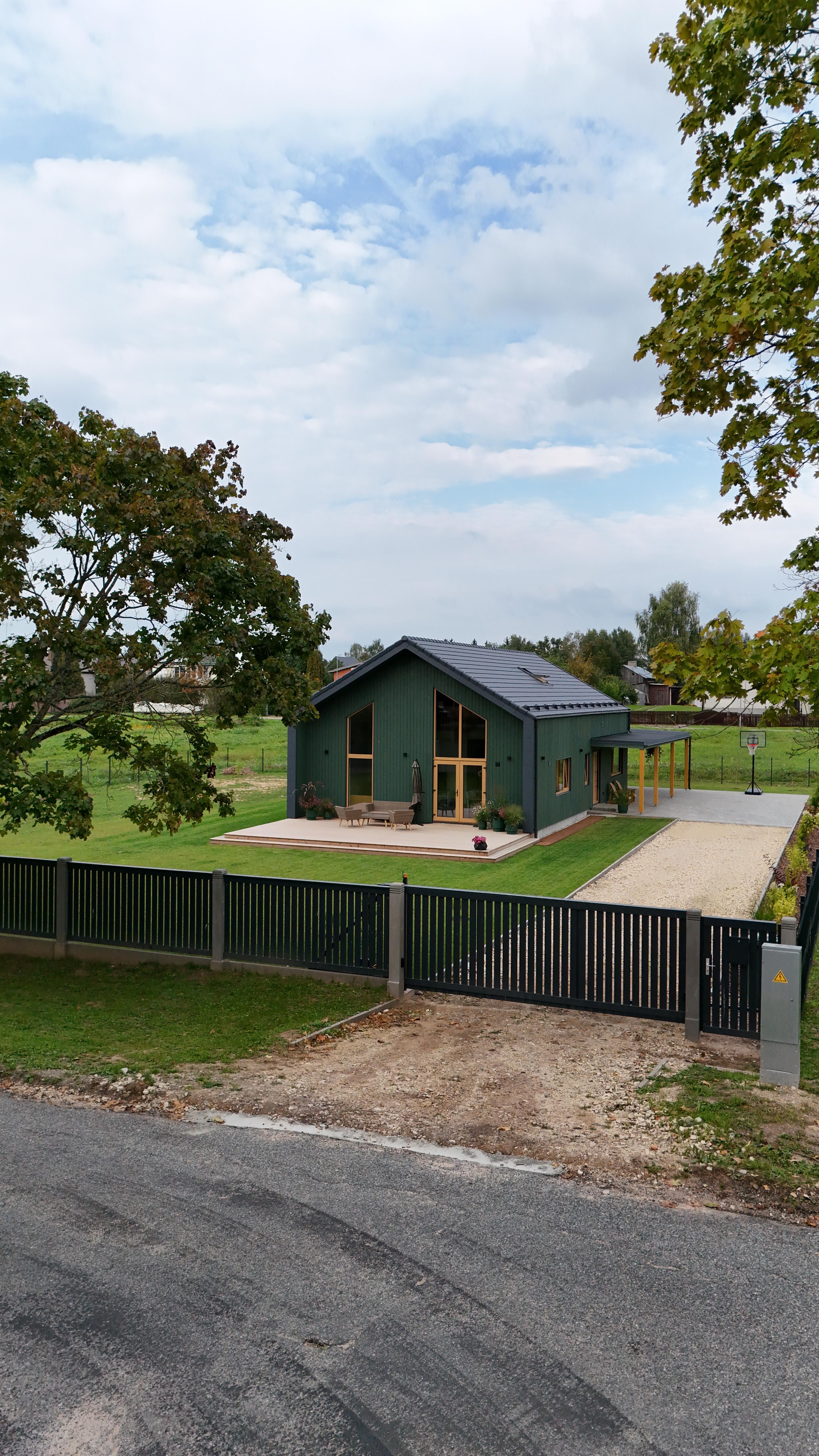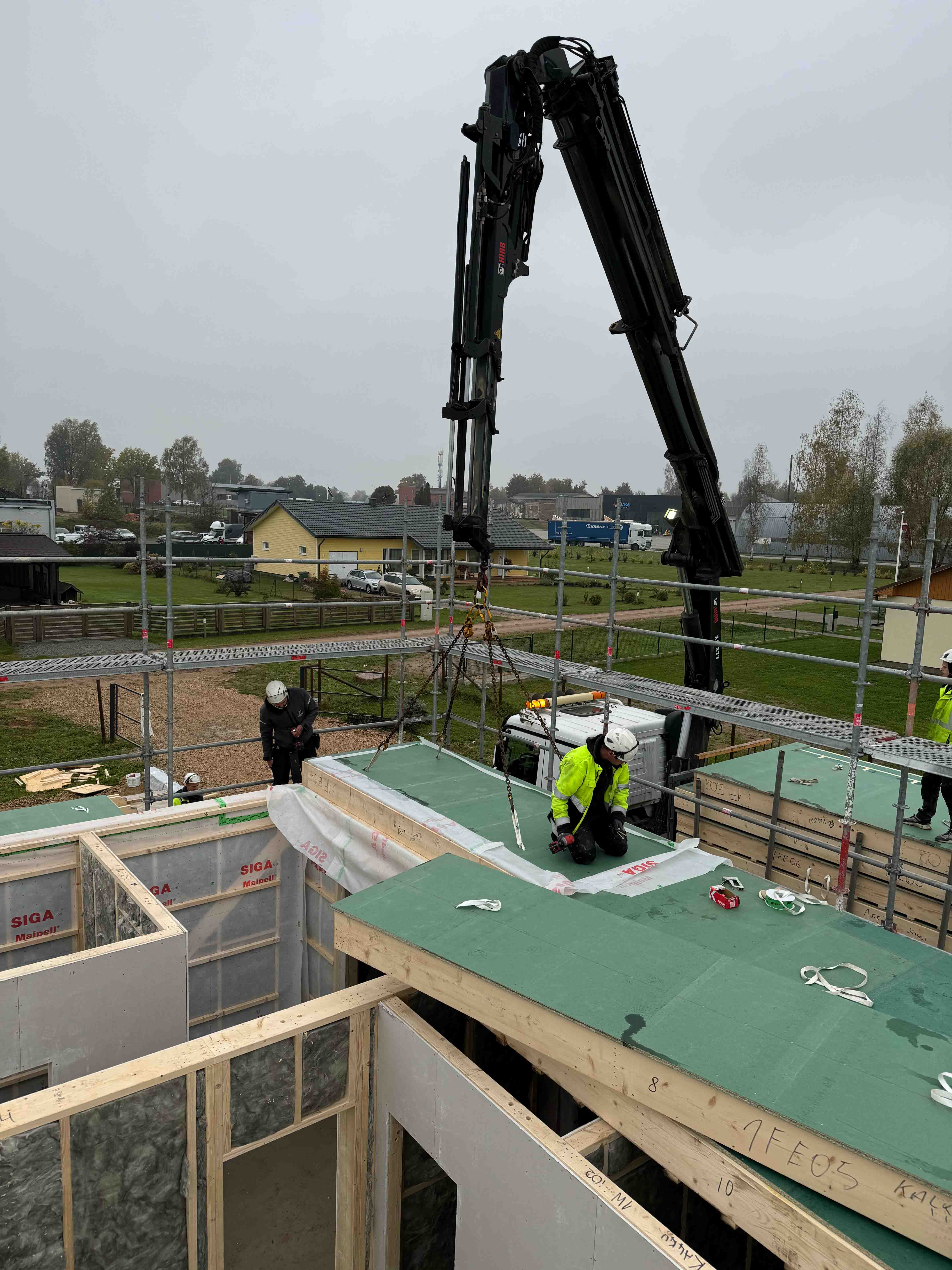 Mājas montāža objektā tiek veikta ātri un efektīvi, izmantojot rūpnīcā sagatavotas konstrukcijas, kas tiek montētas uz vietas ar augstākās kvalitātes materiāliem, nodrošinot stabilitāti, energoefektivitāti un precīzu rezultātu.