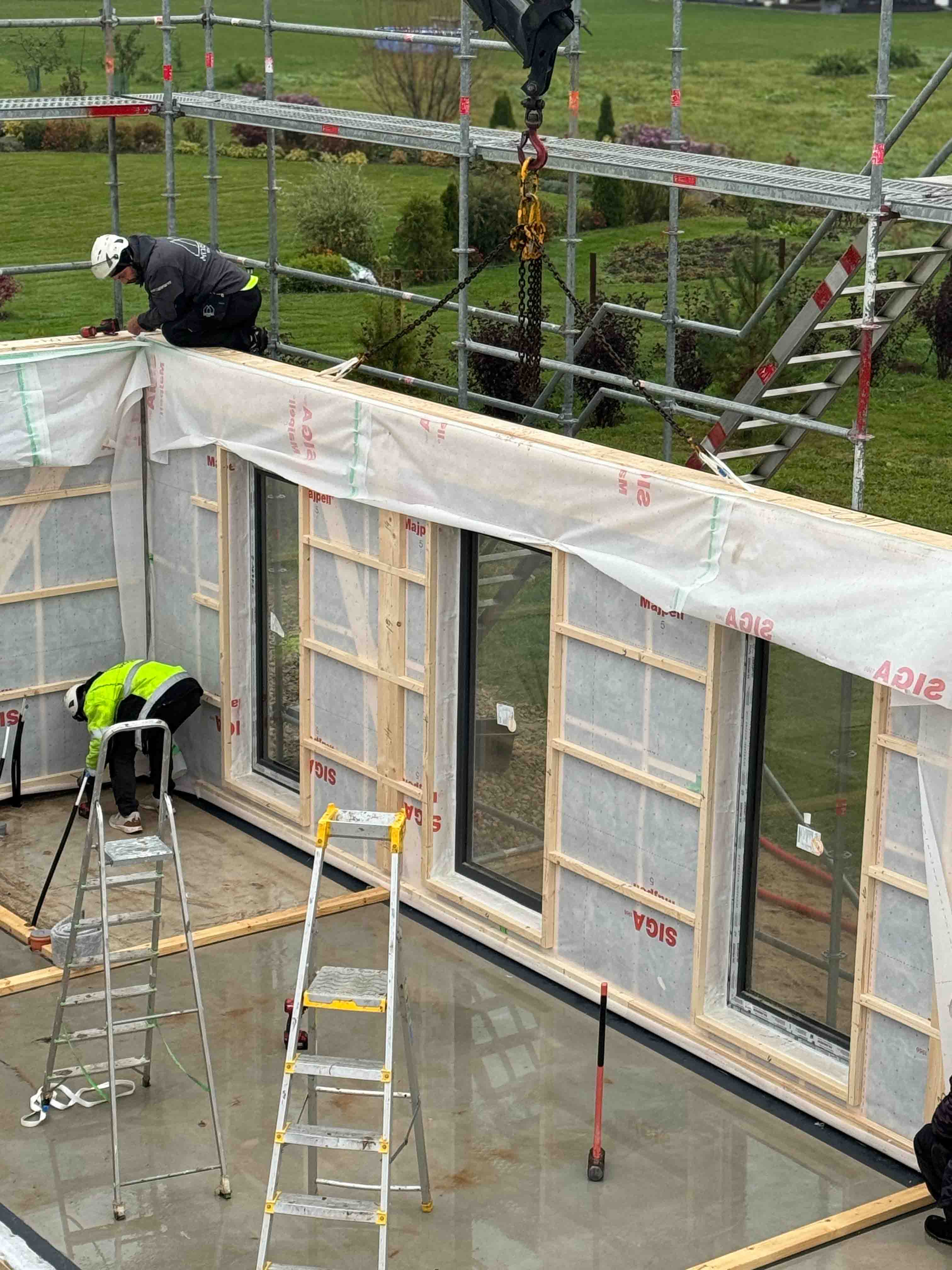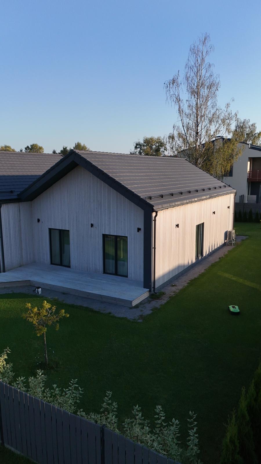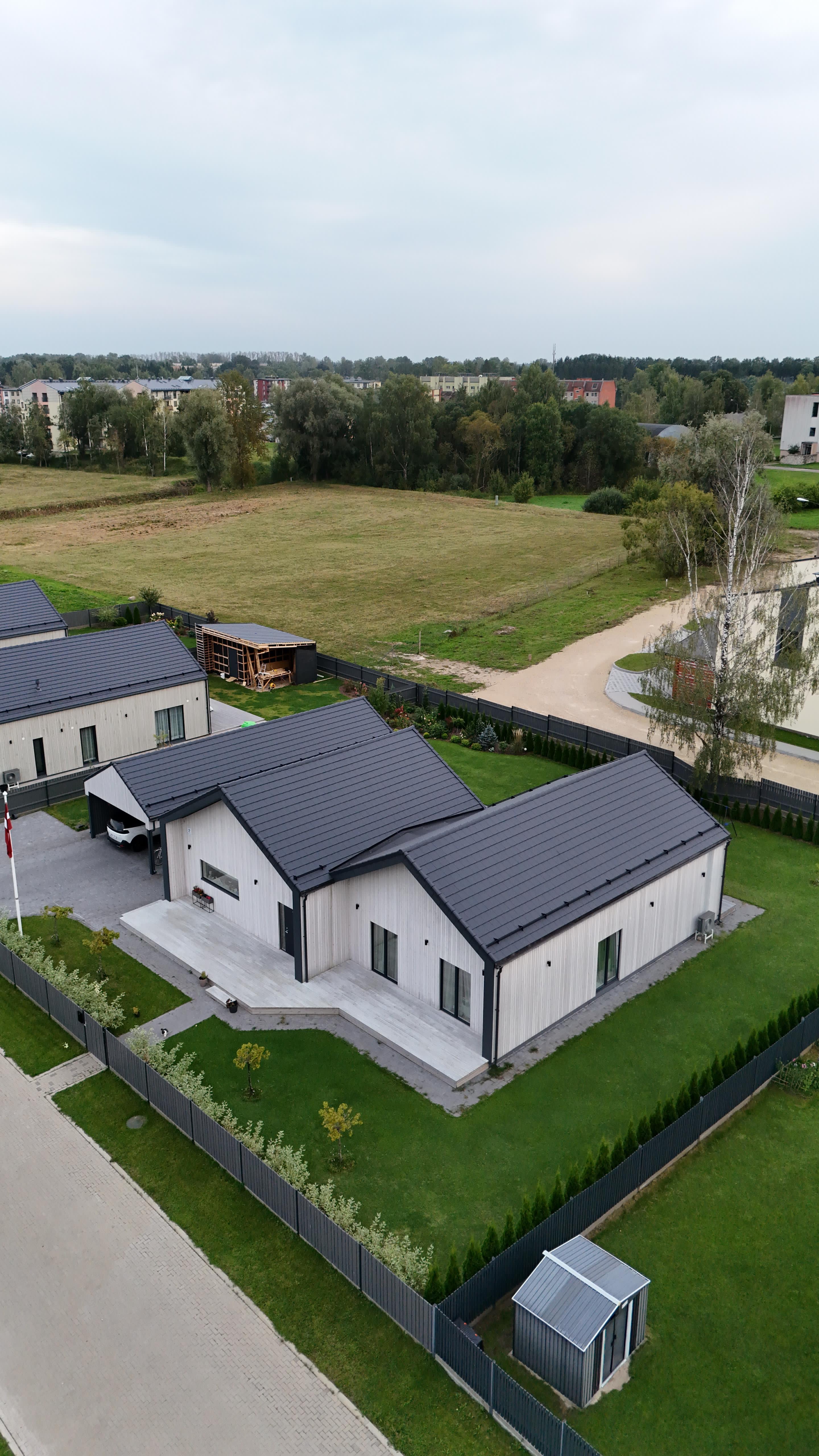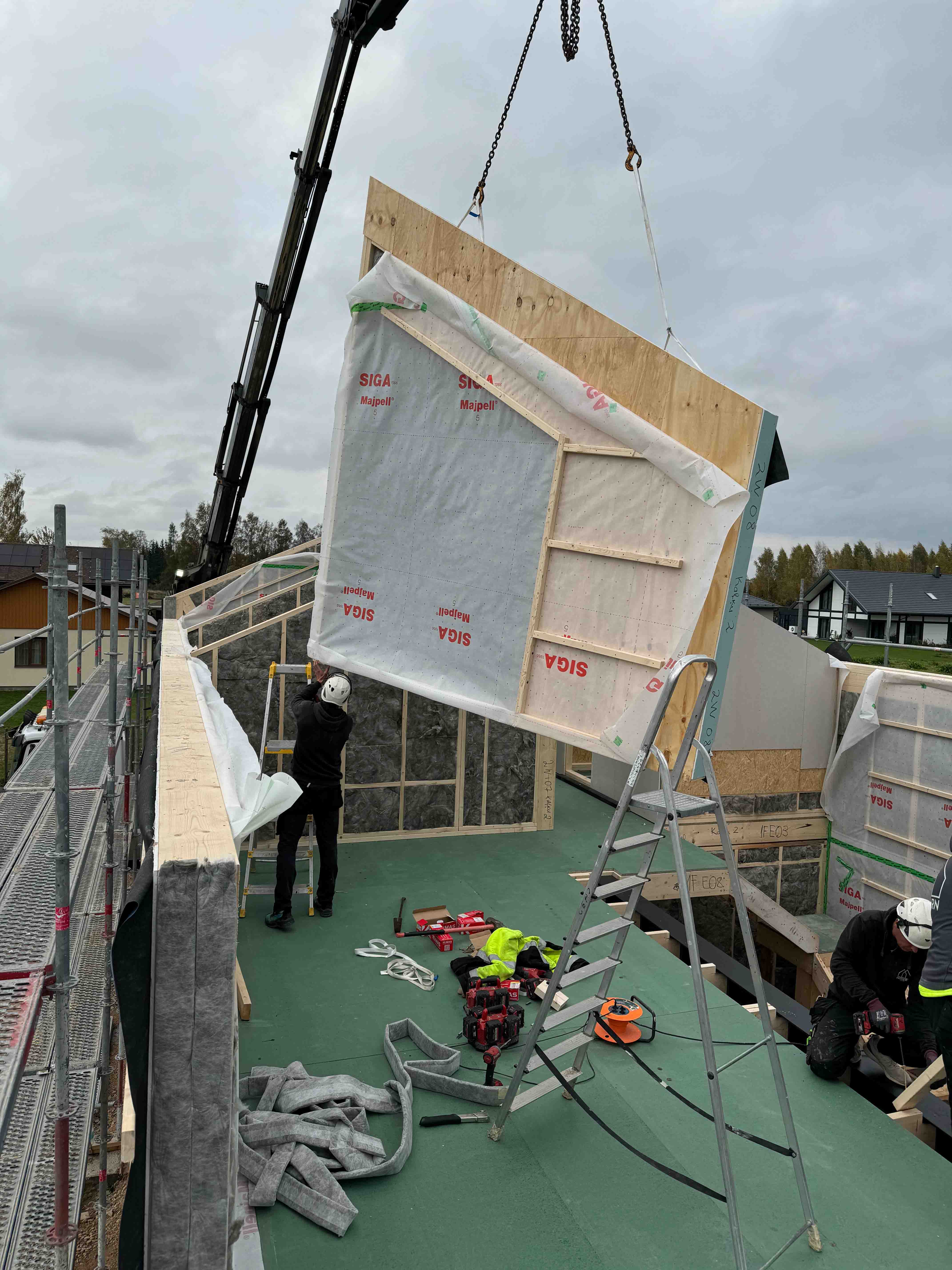 Mājas montāža objektā tiek veikta ātri un efektīvi, izmantojot rūpnīcā sagatavotas konstrukcijas, kas tiek montētas uz vietas ar augstākās kvalitātes materiāliem, nodrošinot stabilitāti, energoefektivitāti un precīzu rezultātu.
