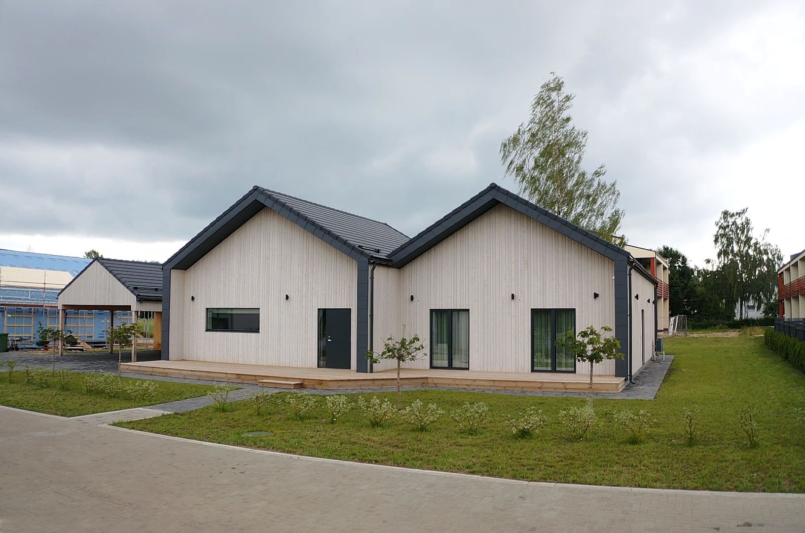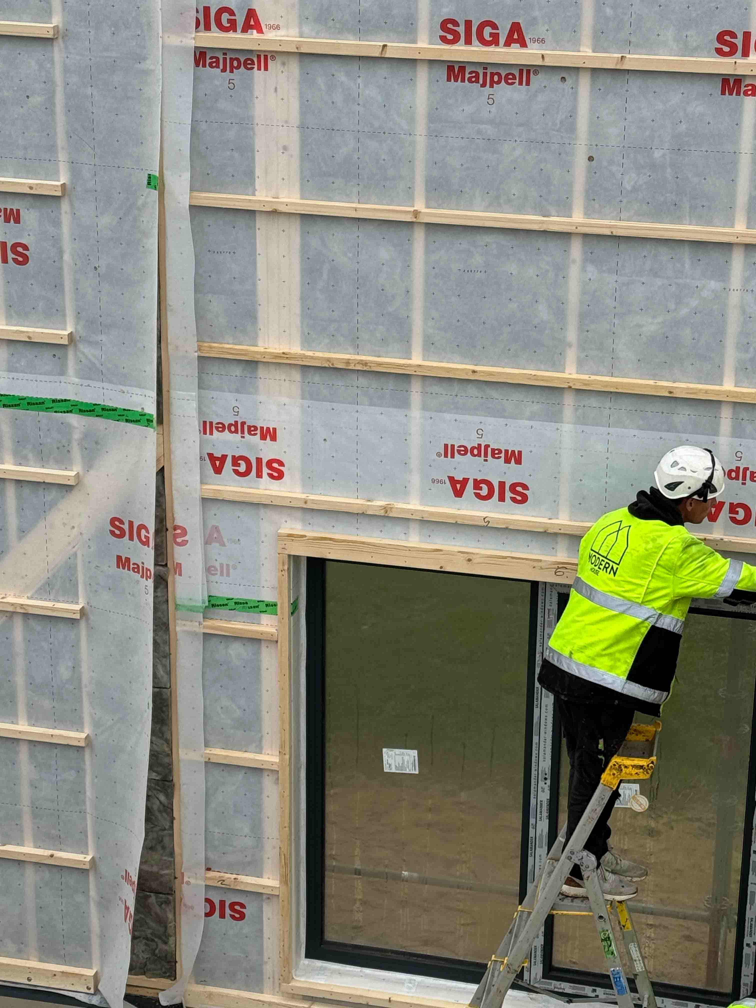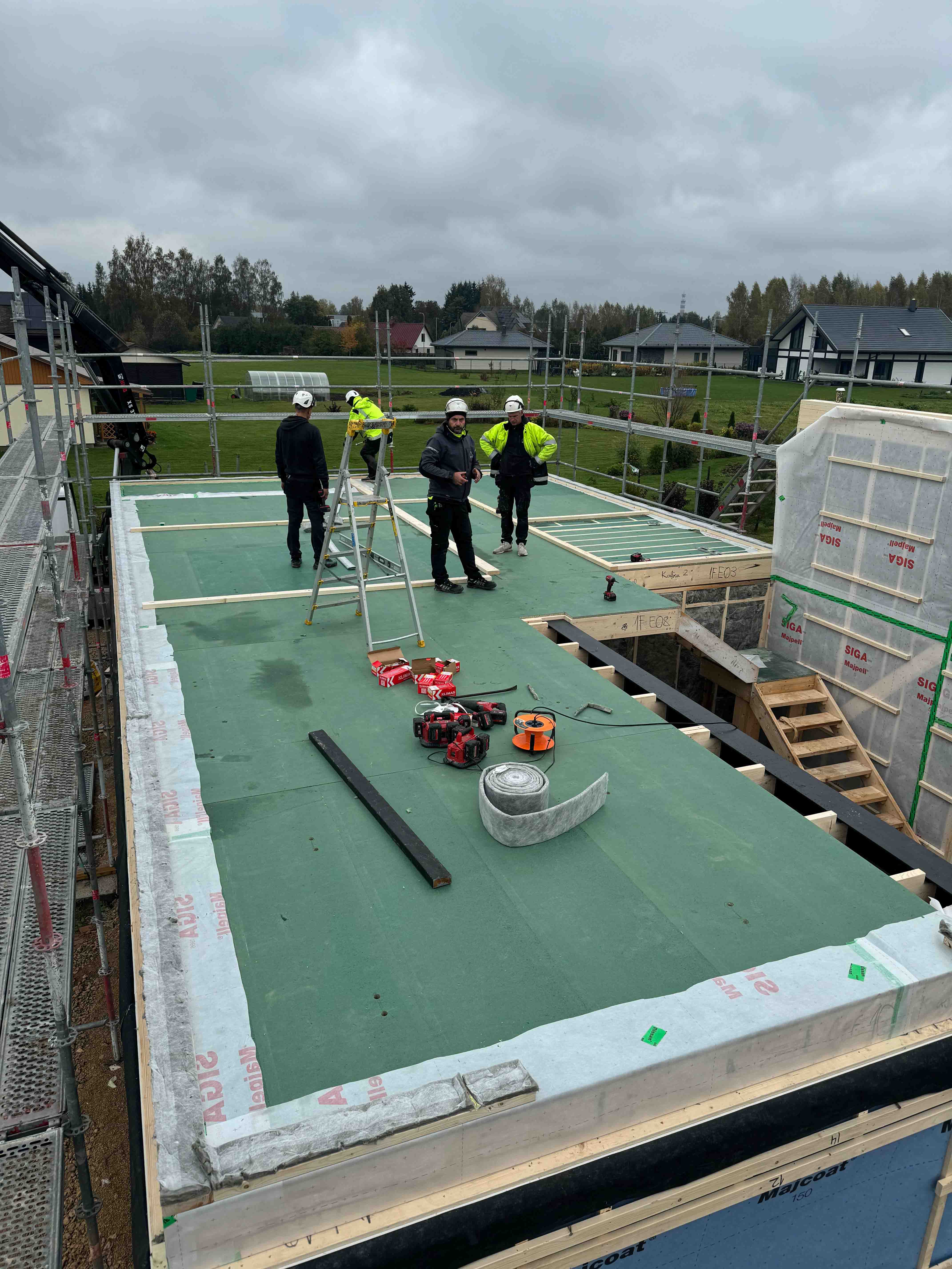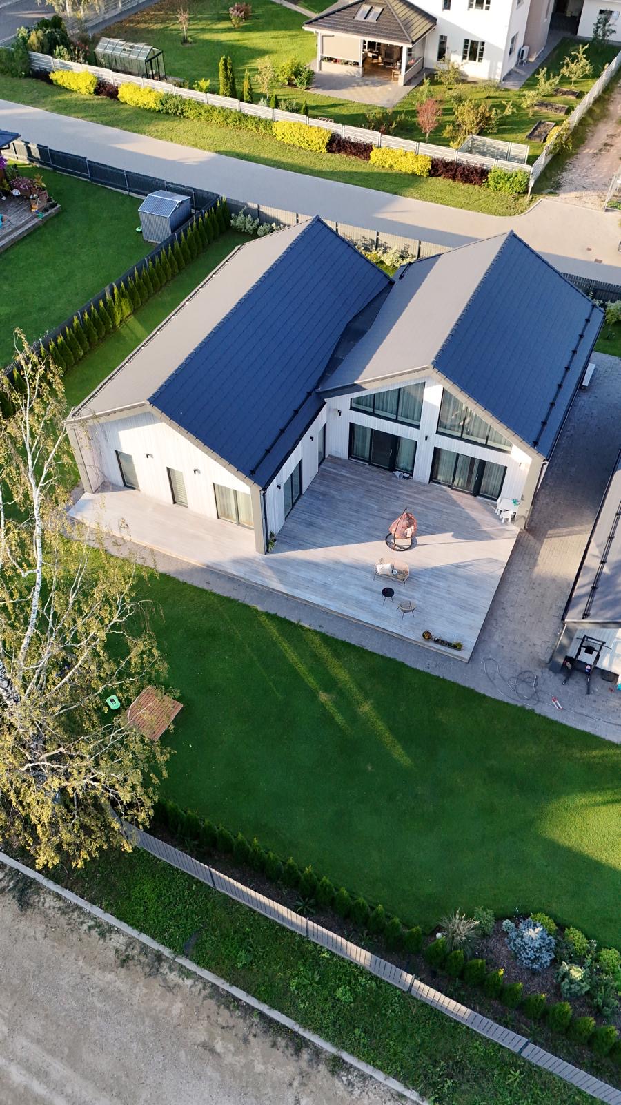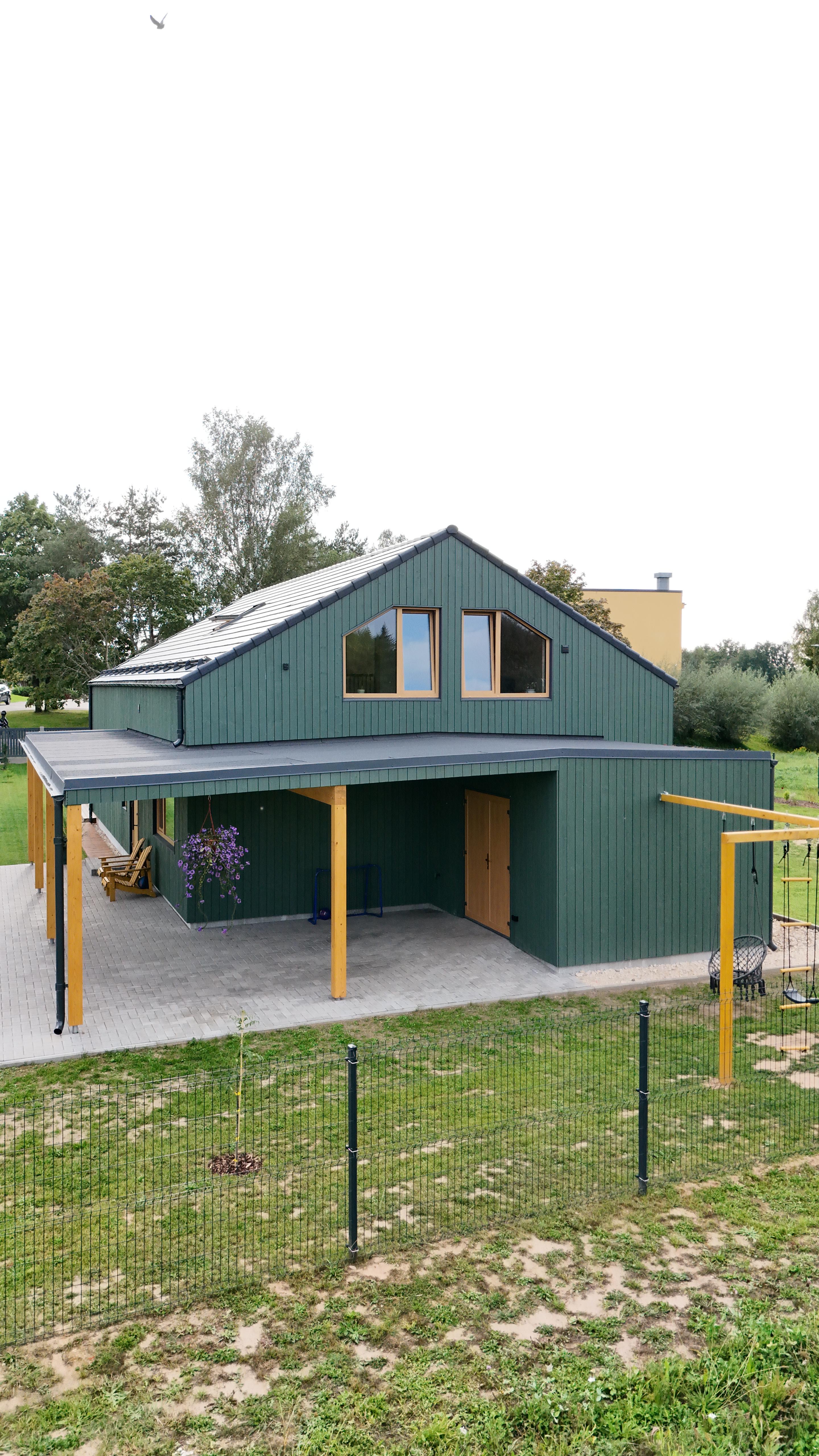 Mājas montāža objektā tiek veikta ātri un efektīvi, izmantojot rūpnīcā sagatavotas konstrukcijas, kas tiek montētas uz vietas ar augstākās kvalitātes materiāliem, nodrošinot stabilitāti, energoefektivitāti un precīzu rezultātu.