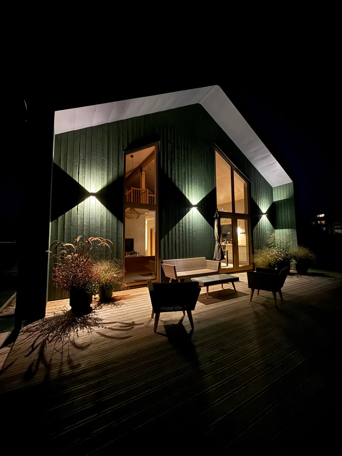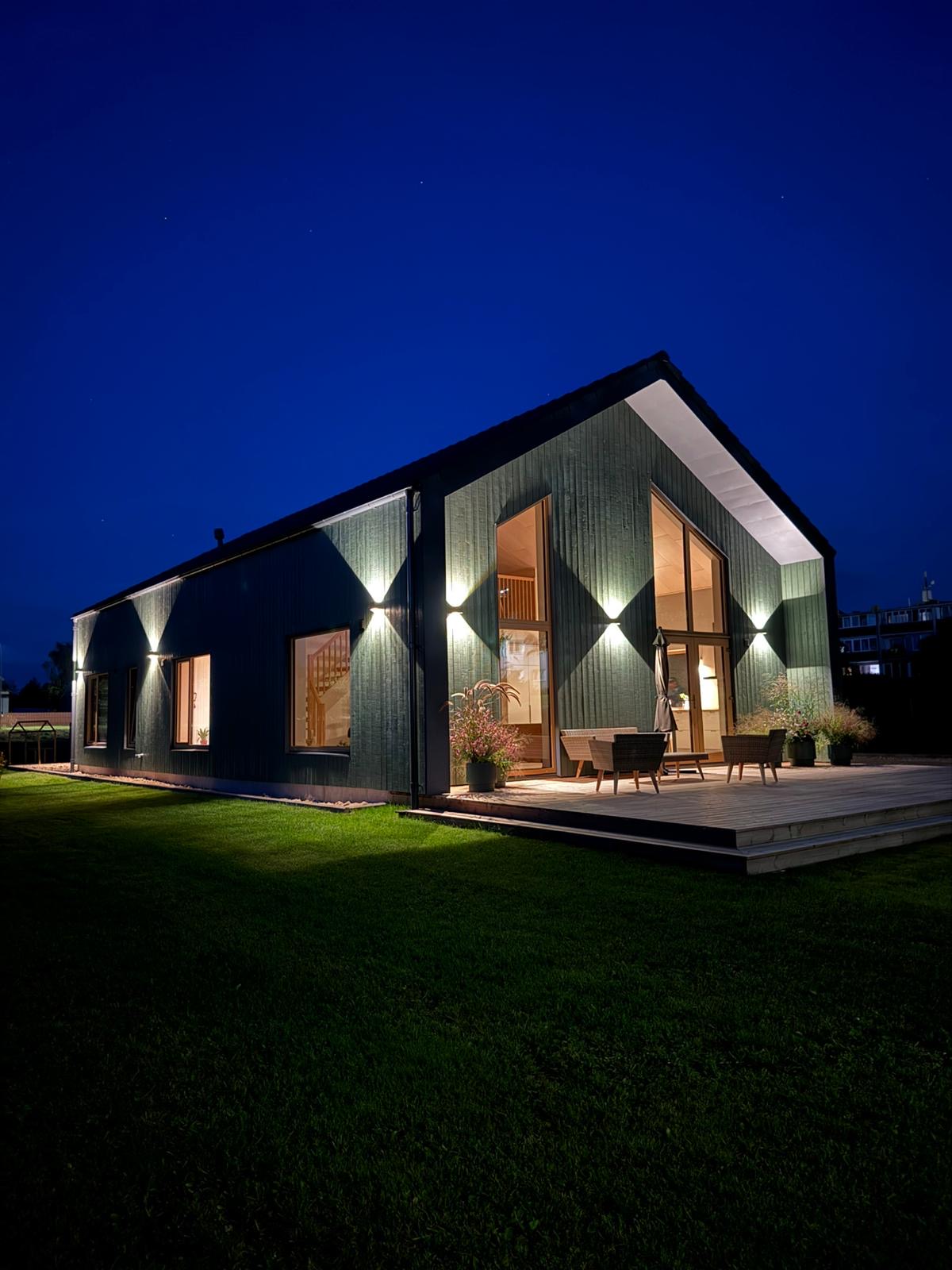 Viens no populārākajiem variantiem ir sienas gaismekļi, kas izgaismo fasādi un terasi. Tos var novietot pie ieejas durvīm vai gar mājas perimetru, lai nodrošinātu labu redzamību un vienlaikus izceltu mājas arhitektoniskās detaļas.