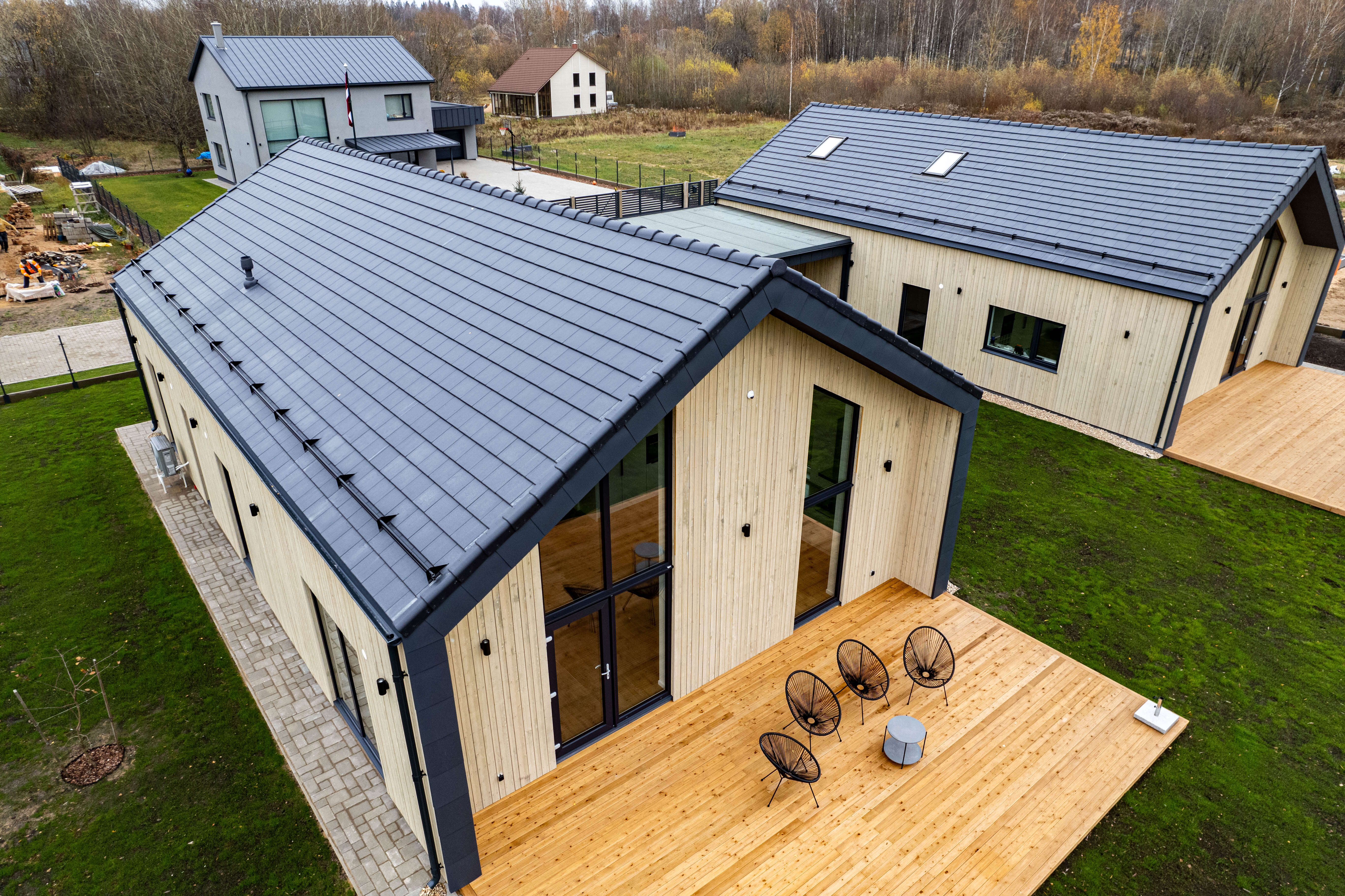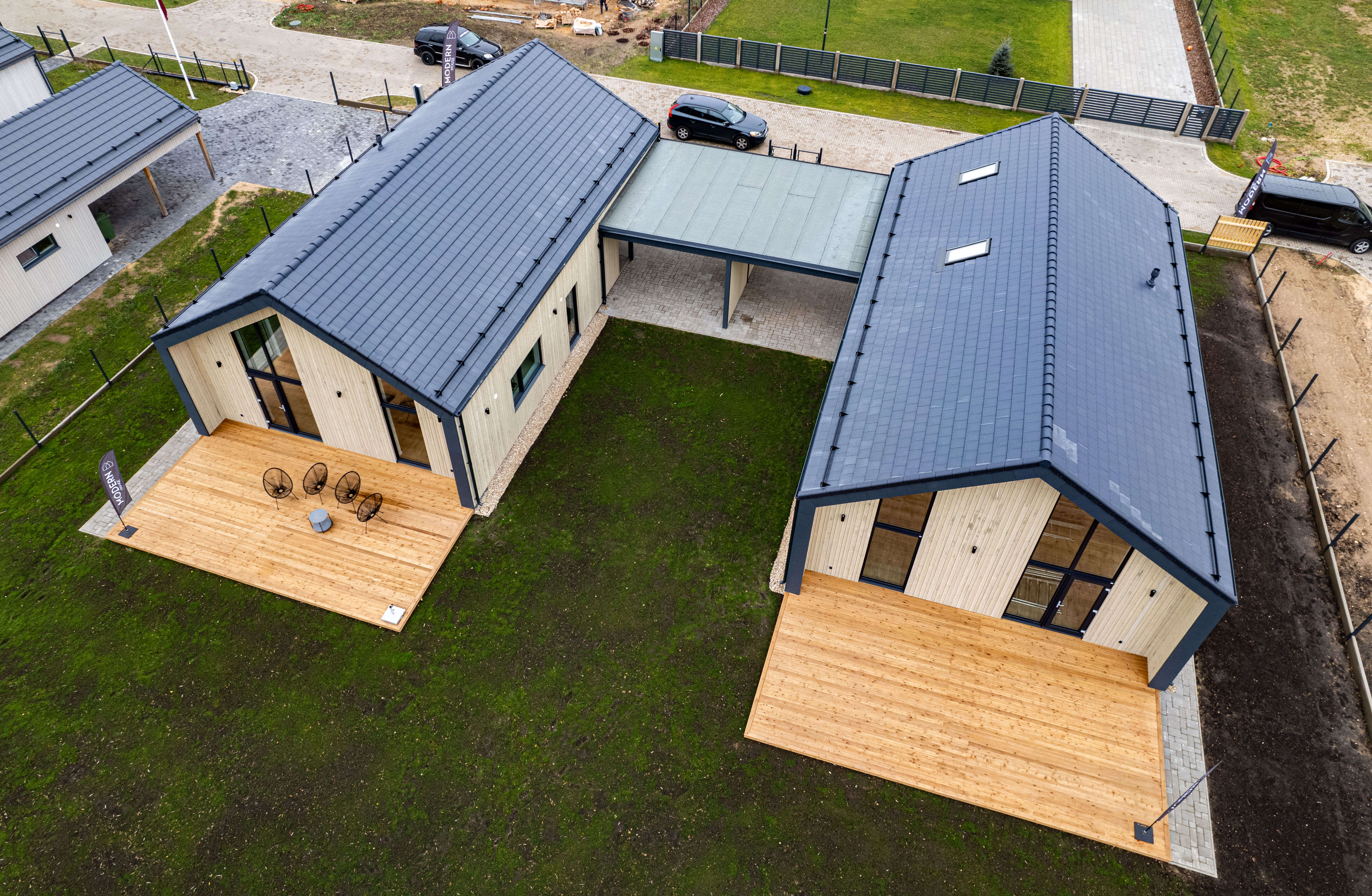 Izstrādājam arī dvīņu mājas projektus, kas apvieno funkcionalitāti un komfortu, radot pārdomātu plānojumu, kas nodrošina gan privātumu, gan tuvību ar kaimiņiem.