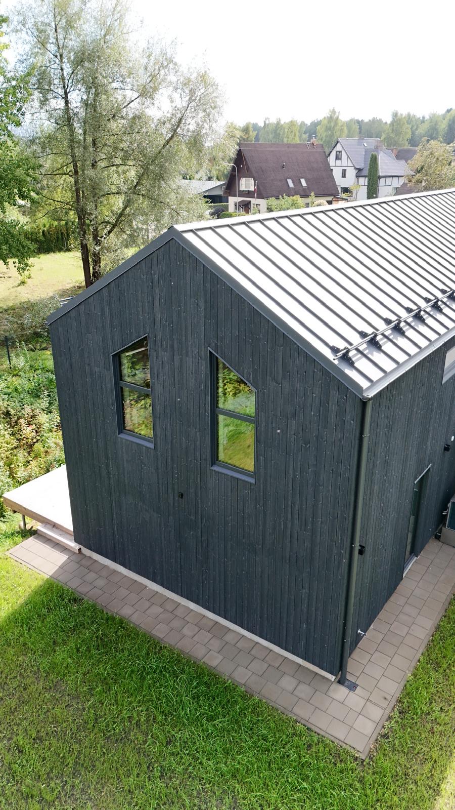 Projekts ir veidots ar praktisku, pārdomātu plānojumu un modernu vizuālo risinājumu. Mājas koncepts izstrādāts atbilstoši tam, lai ēka iegūtu A+ energoefektivitātes pakāpi, kas pozitīvi atsauksies uz zemām ikmēneša komunālajām izmaksām.