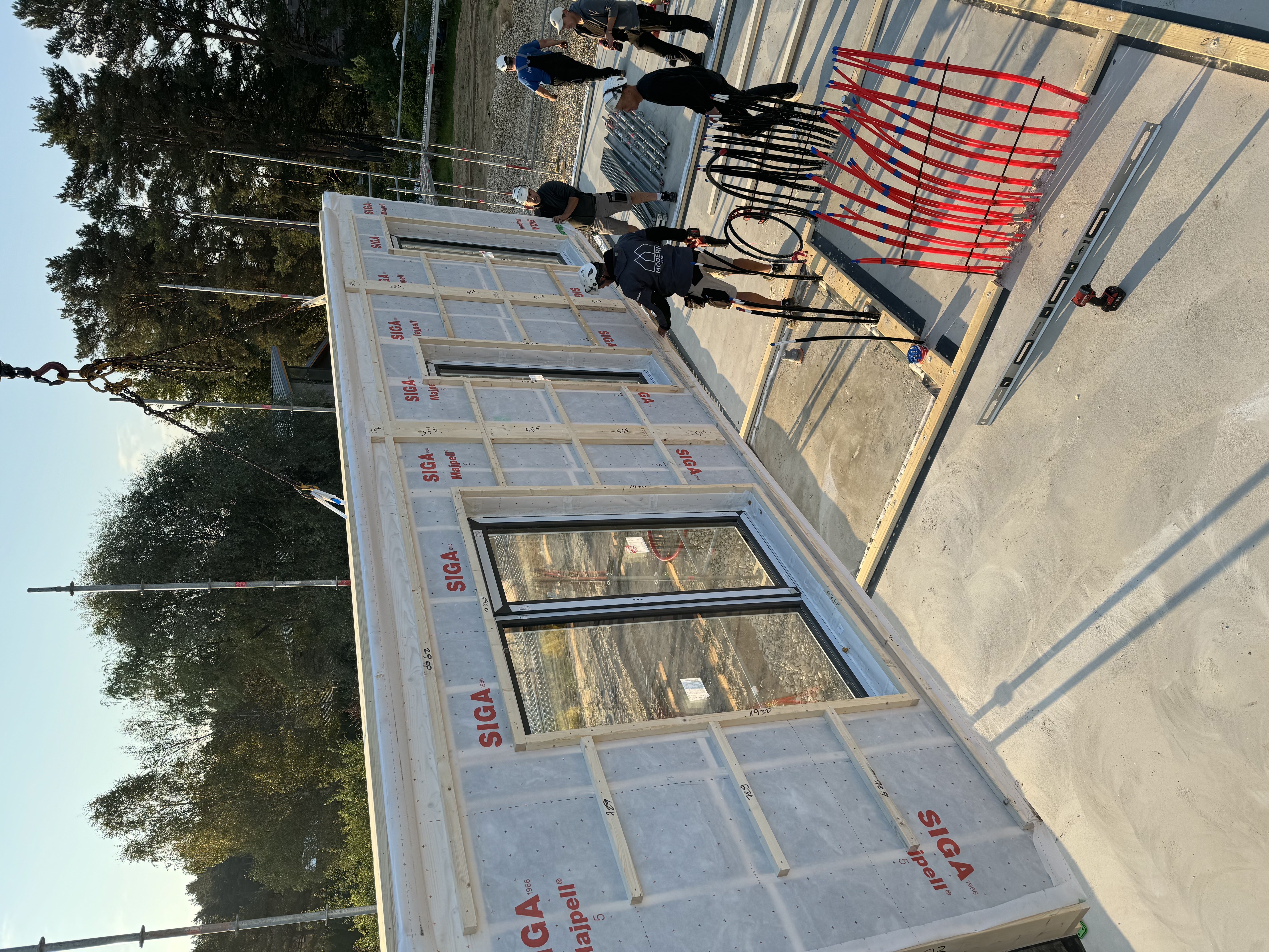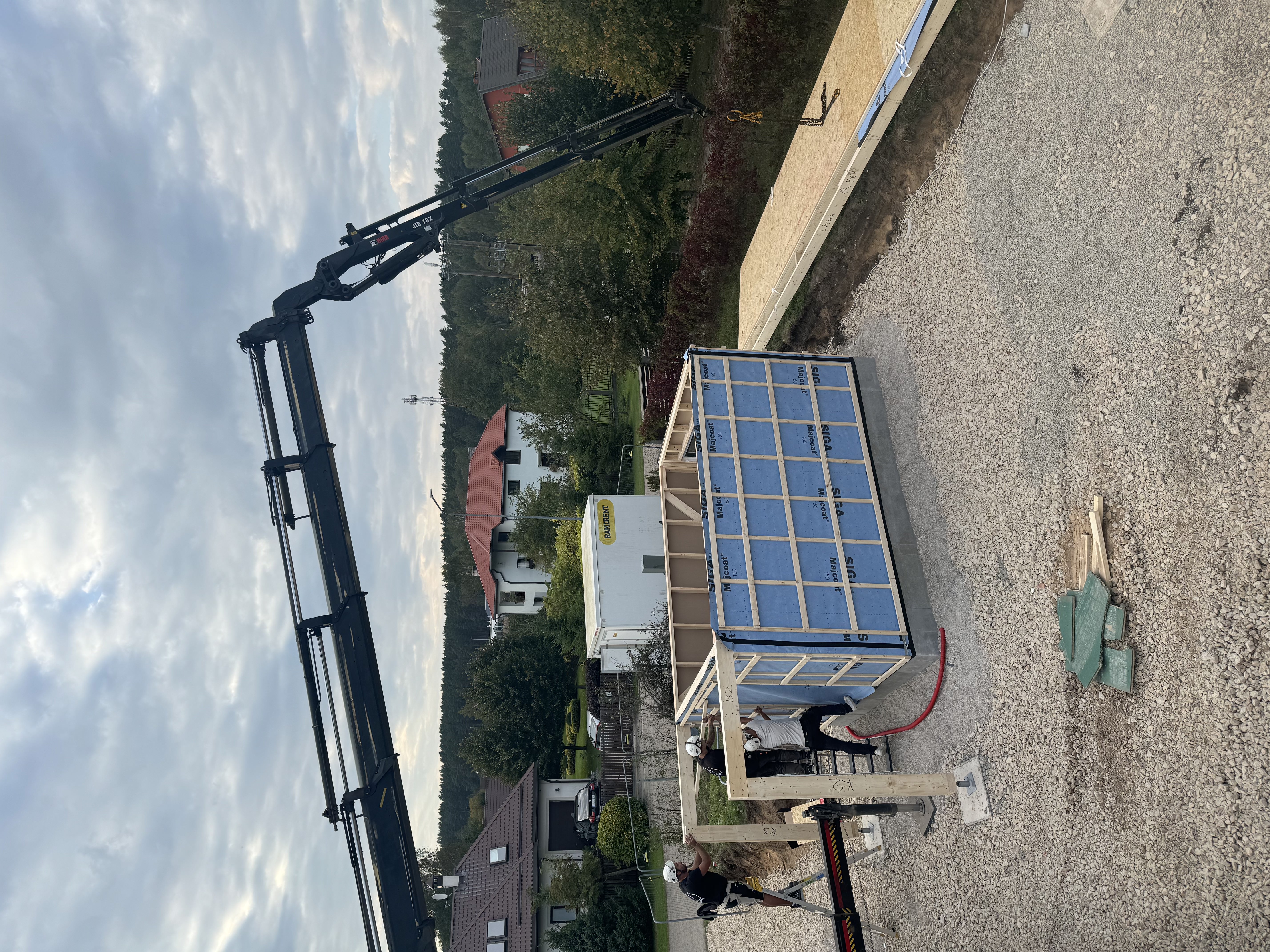 Privātmājas montāžas process sākas ar rūpnīcā izgatavotu konstrukciju nogādāšanu būvlaukumā, kur tās tiek saliktas, veidojot pilnībā pabeigtu dzīvojamo telpu.