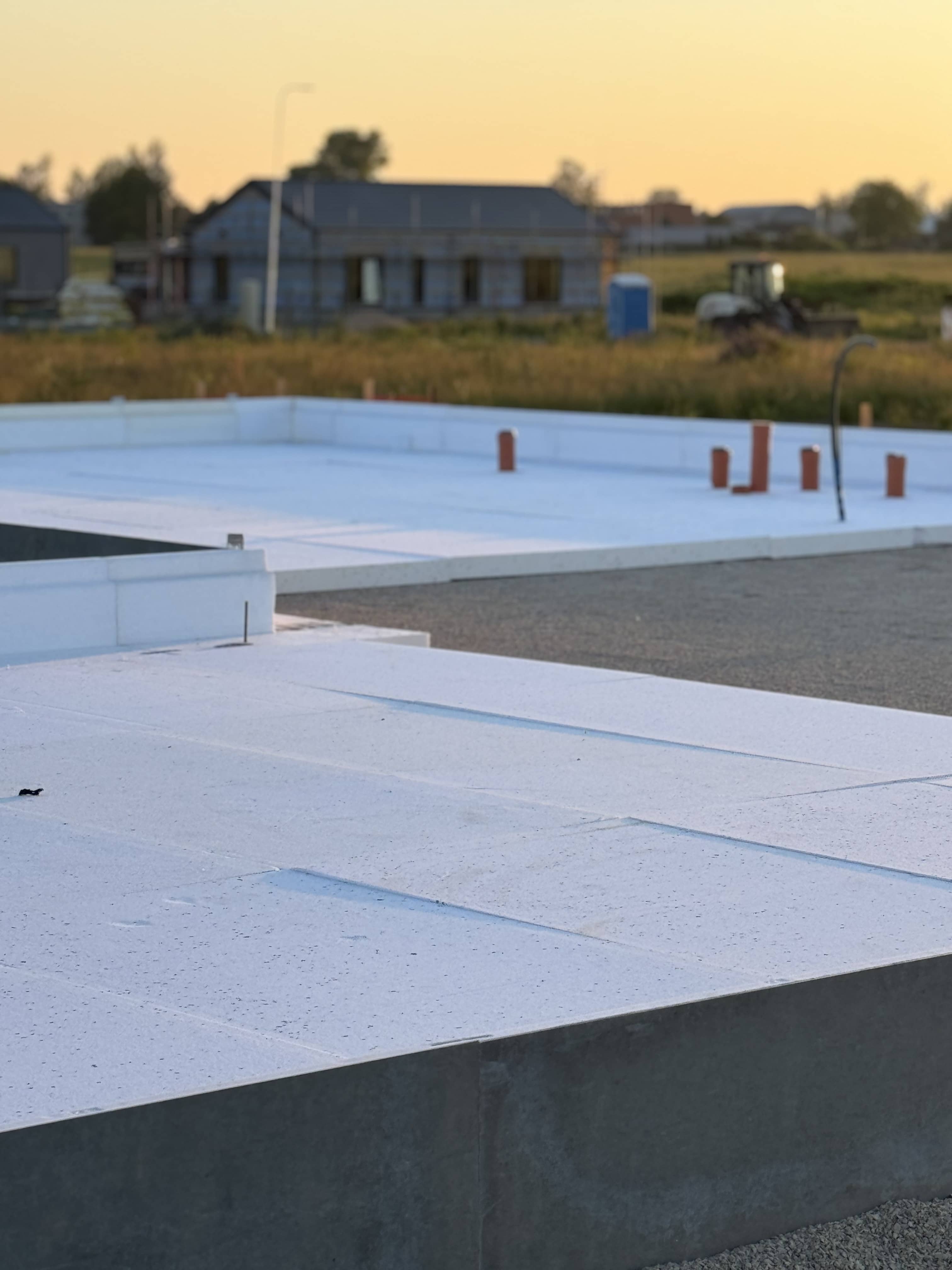 Plātveidņu pamatu izbūve Svīres ielā ietver grunts sagatavošanu, veidņu un armatūras uzstādīšanu, kam seko betona liešana un sacietēšana. Pēc tam tiek veikta pamatu virsmas apdare un hidroizolācija, lai nodrošinātu to izturību un stabilitāti.