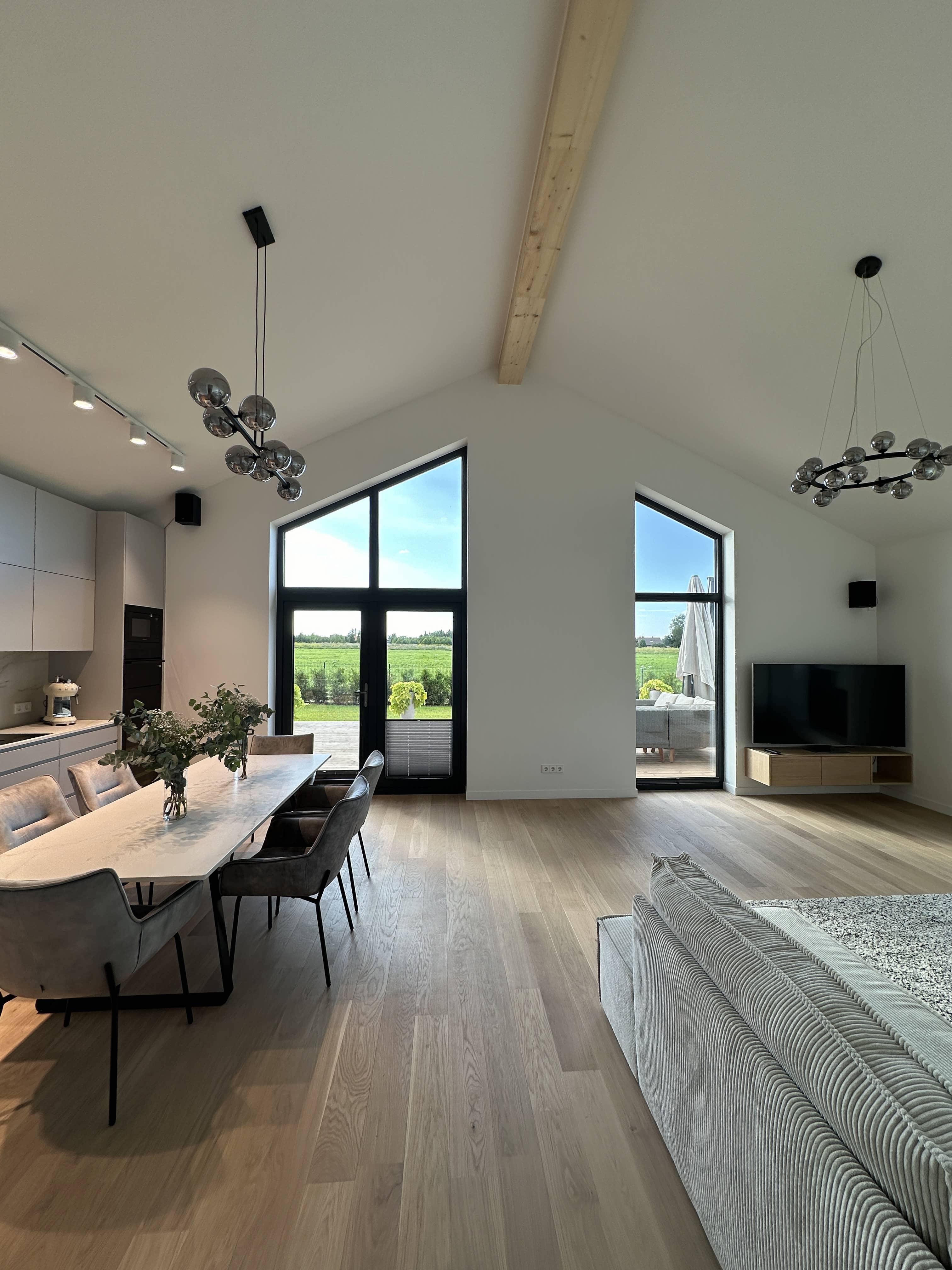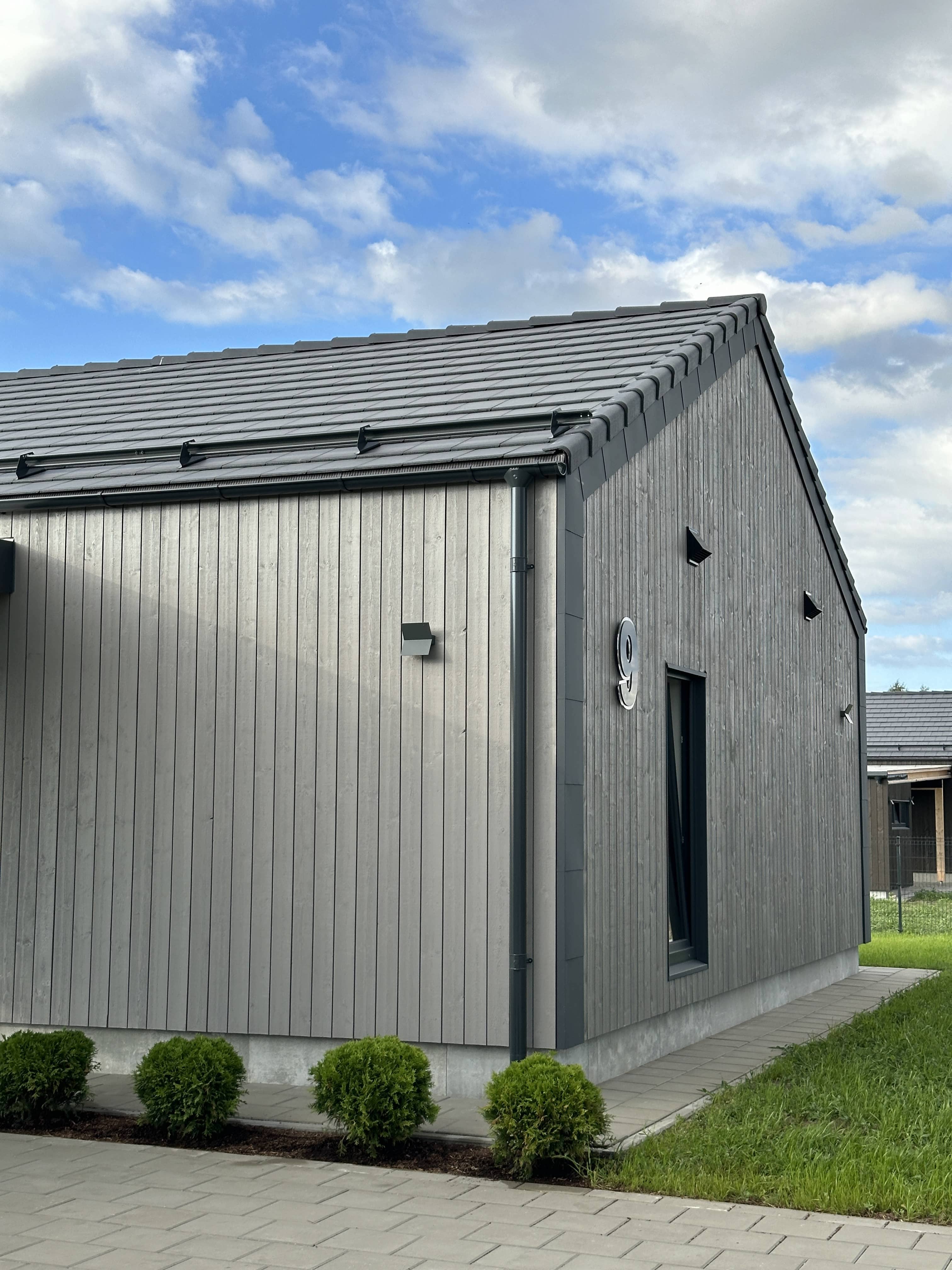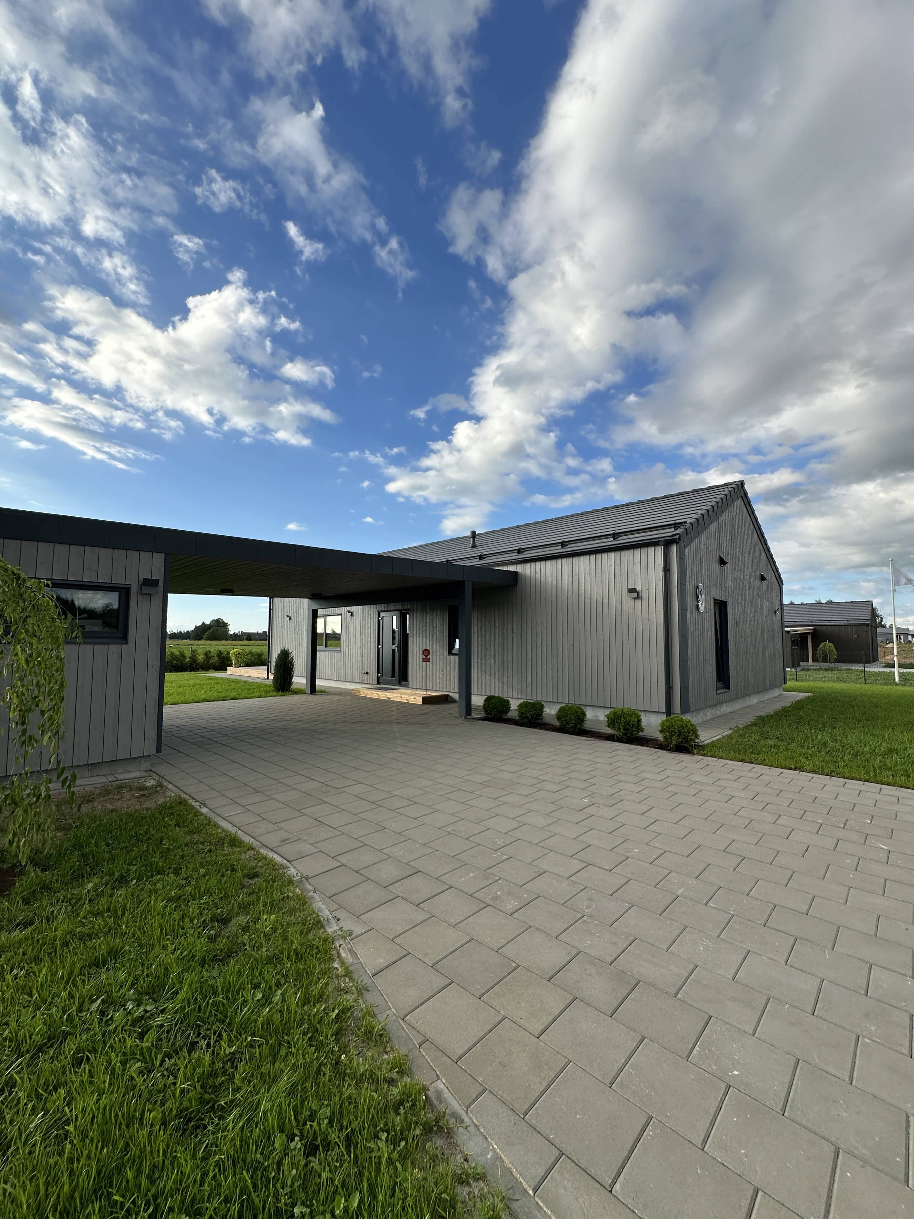 Piedāvājam iegādāties īpašumu jaunā dzīvojamo māju projektā Siguldā, Svīres ielā. Energoefektīva, vienstāvīga koka karkasa ģimenes māja ar terasi, noliktavu un auto novietni divām automašīnām. Mājā ir trīs guļamistabas, divas vannas istabas, viena ar vannu, otra ar dušu, tehniskā telpa un plaša dzīvojamā telpa, kas ir apvienota ar virtuvi un augstajiem griestiem līdz jumta konstrukcijai, pārējā mājas daļā griestu augstums 2,70m.