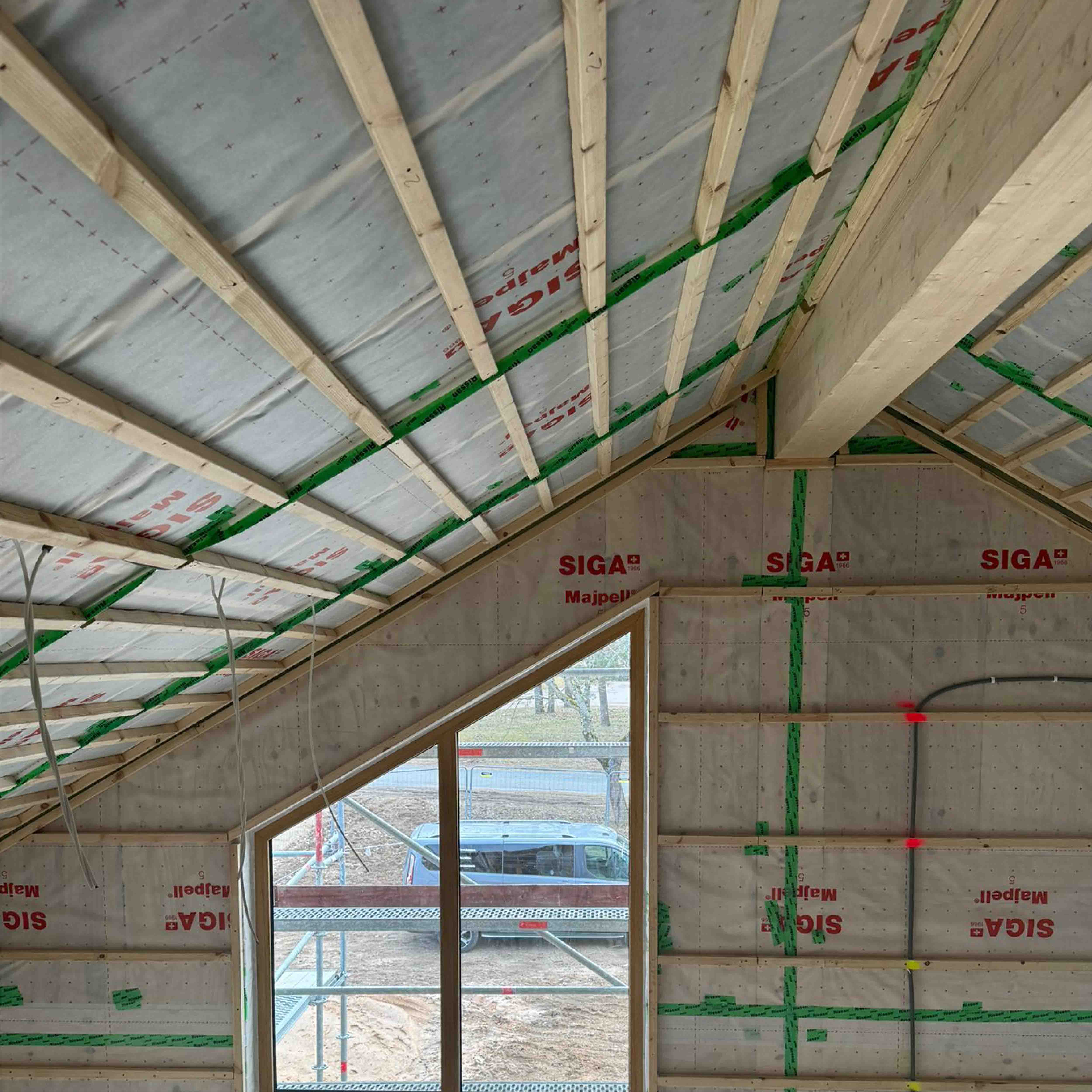 Testa veikšanas laikā vienmēr esam klāt, lai nepieciešamības gadījumā, varam novērst nepilnības. Tikai pēc šo soļu veikšanas turpinām darbus. Norobežojošās konstrukcijas vairs netiek šķērsotas. Spiedientests ir gan mūsu iekšējā pārbaude, gan arī pierādījums klientam, ka arī darbi, kurus pēc mājas pabeigšanas nav iespējams apskatīt, ir izdarīti pareizi.