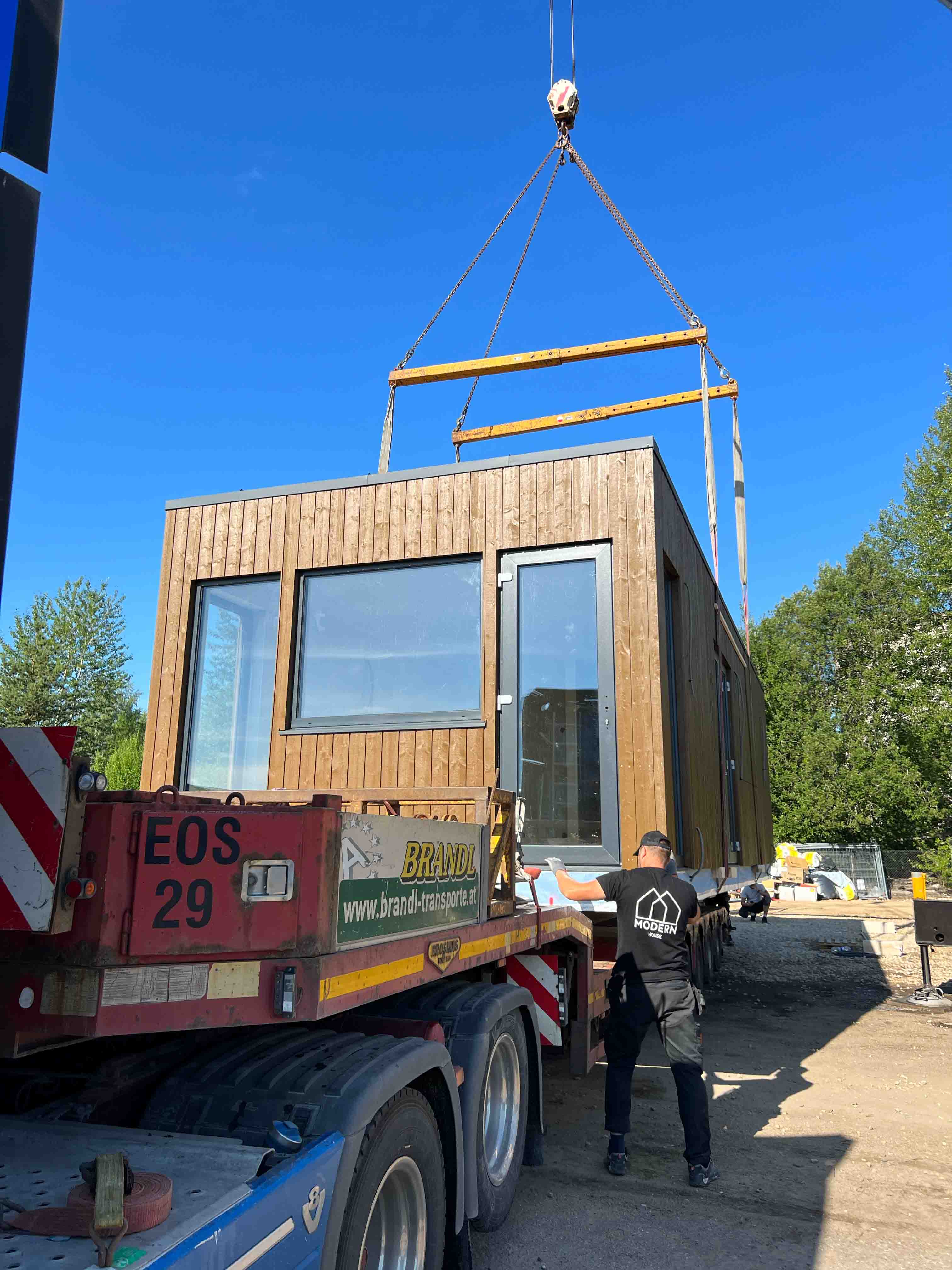 Modern House komanda ir ļoti priecīga un pateicīga par katra klienta vēlmi un izvēli mums uzticēties. Šoreiz mūsu koka karkasa modulis Visby devās uz Alūksni!