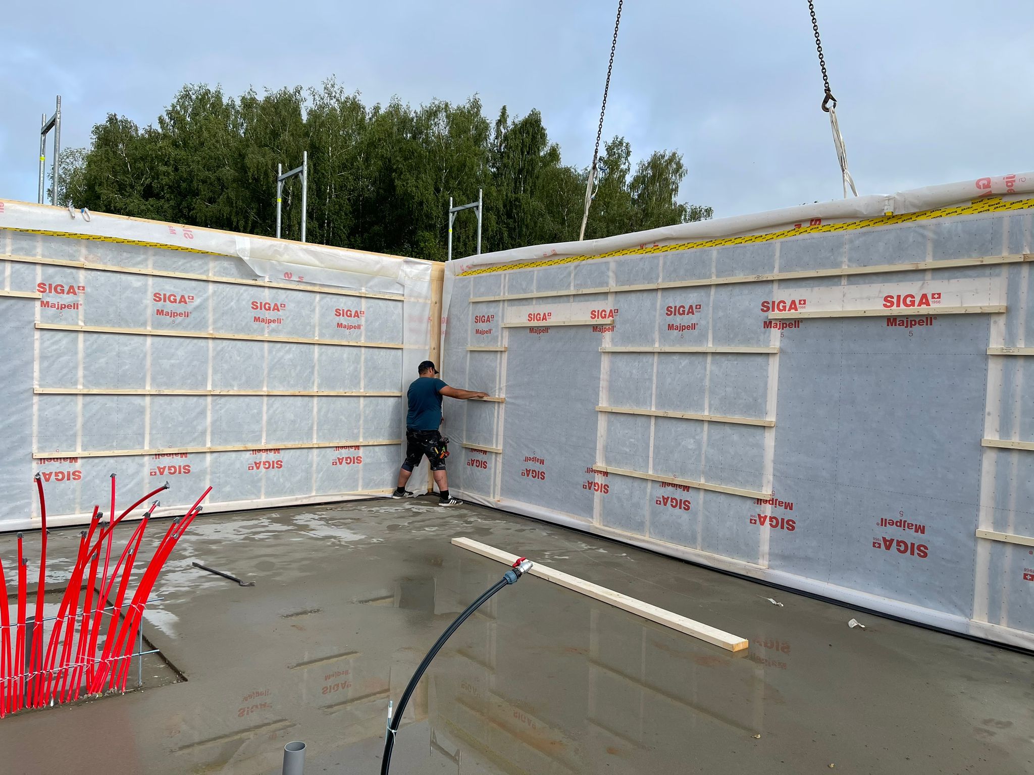 SKC lieto, lai būtu pietiekama izolācija un nebūtu gaisa spraugas starp koka savienojumiem. Eltpams tiek izmantots kā hidroizolāciijas, kas tiek pielīmēts pie betona ar Butyrub. Paroc XSS01 200mm tiek izmantots, lai noblīvētu jeb hermatizētu sienas un pamatu pieslēgumu/savienojumu. Kā arī tiek lietotas līmlentas Siga Fentrim ārpusē, kas nodrošina hermētiskumu, savkārt iekšpusē Siga Rissan.