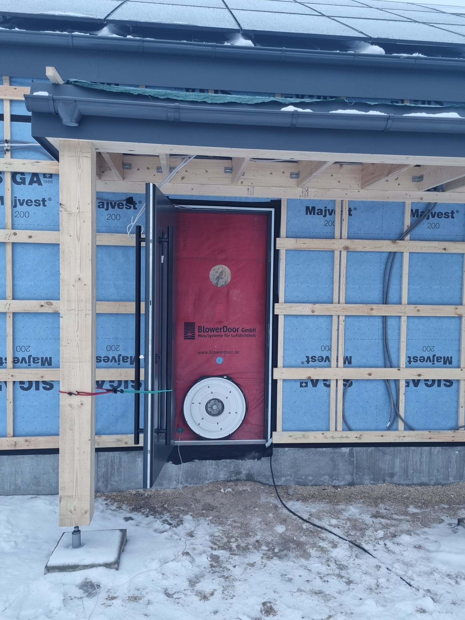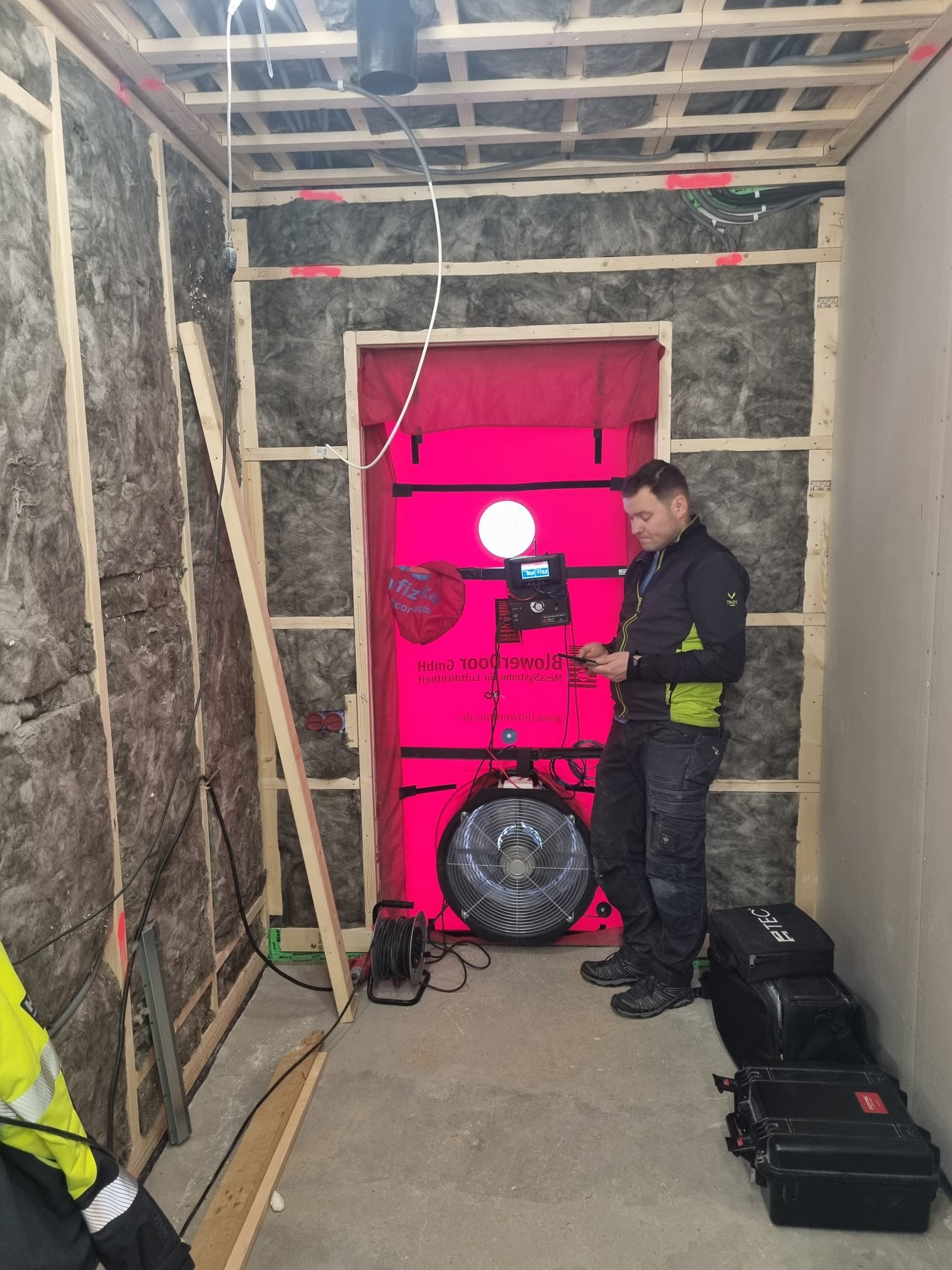 Ēkas hermētiskuma pārbaude izmantojot spiediena testu.