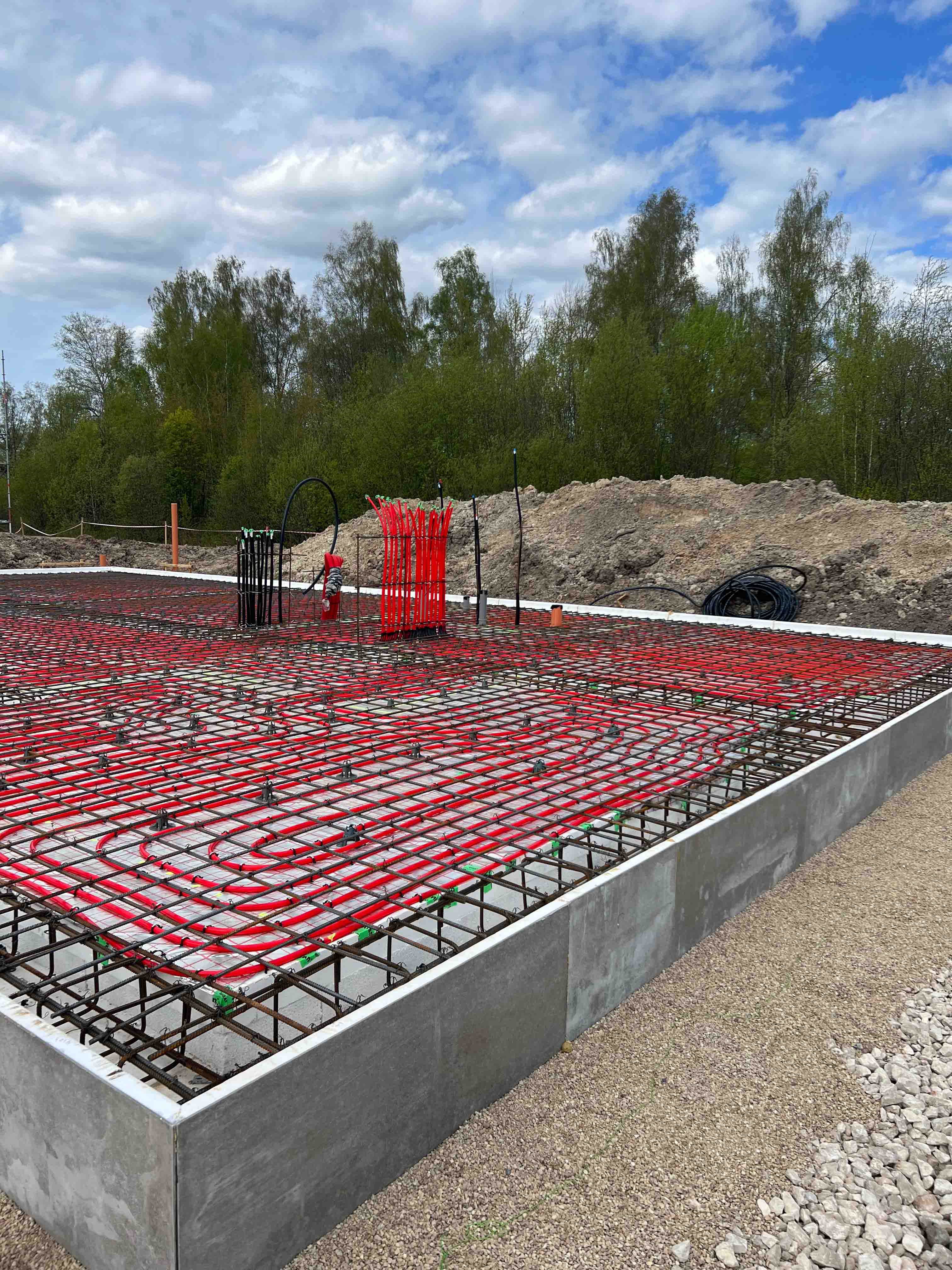 Izrietot no šī tiek aprēķināts precīzs nepieciešamais pamatu stiegrojums gan plātnes daļai, gan nesošo sienu padziļinājumiem.