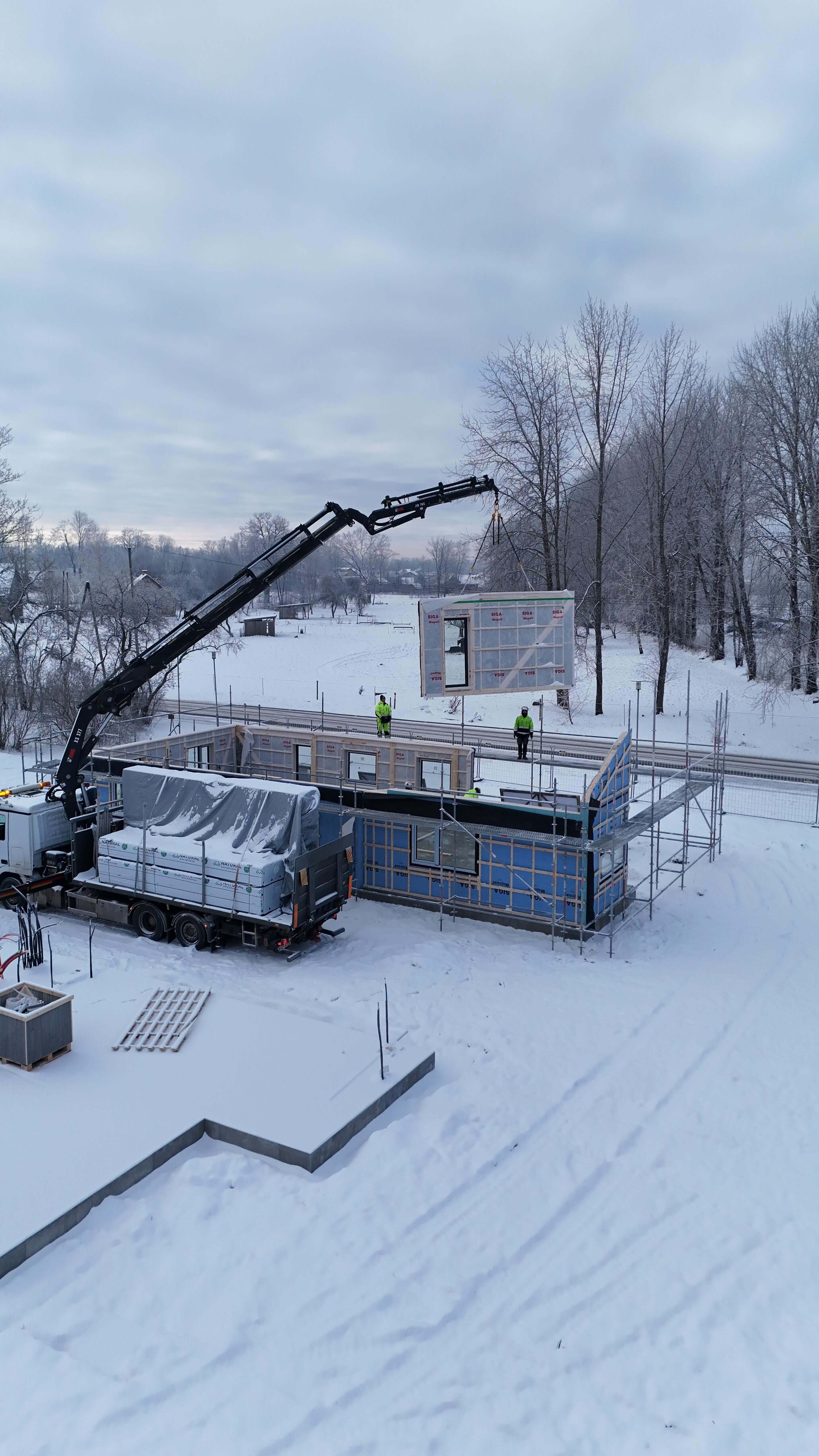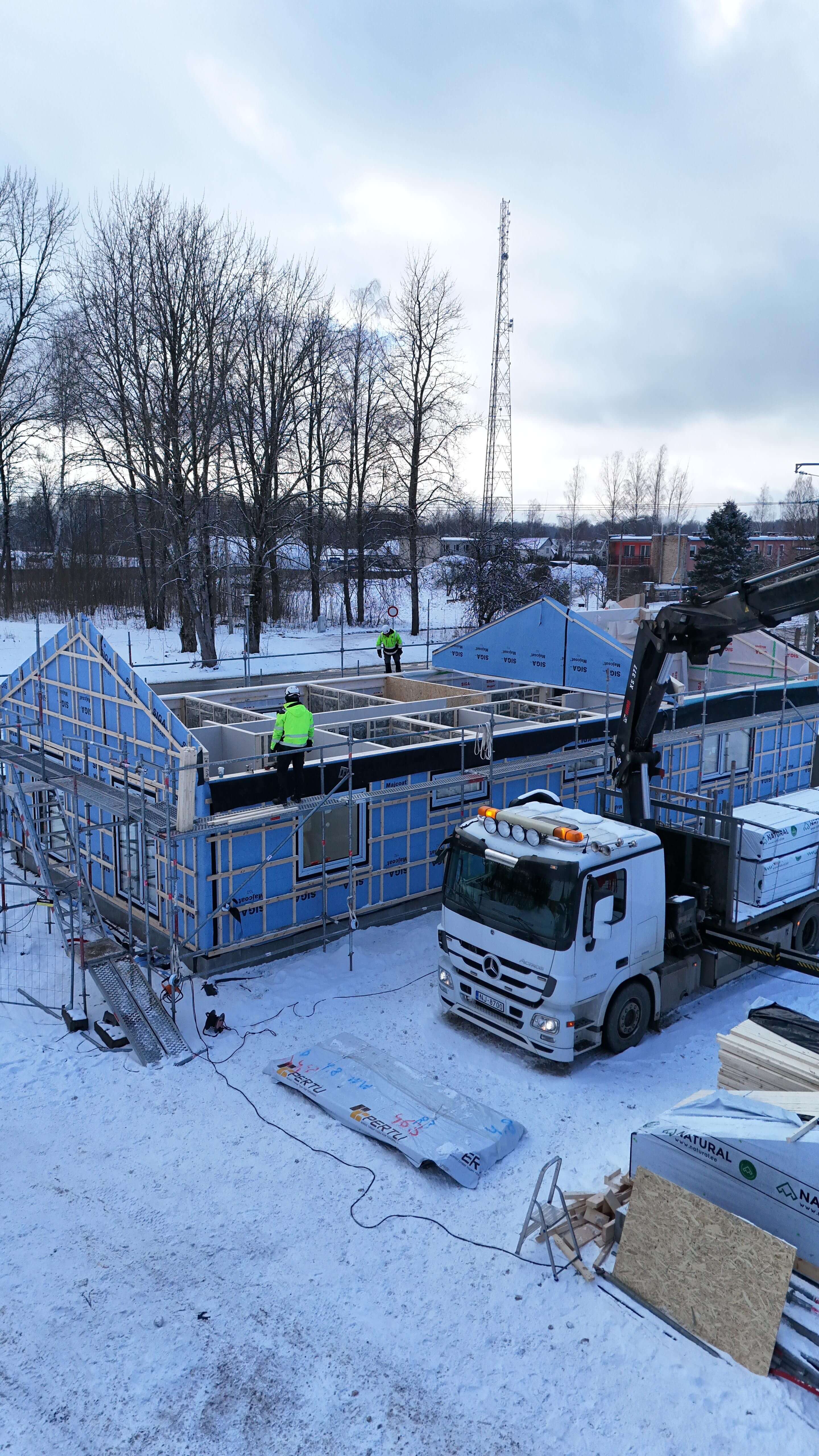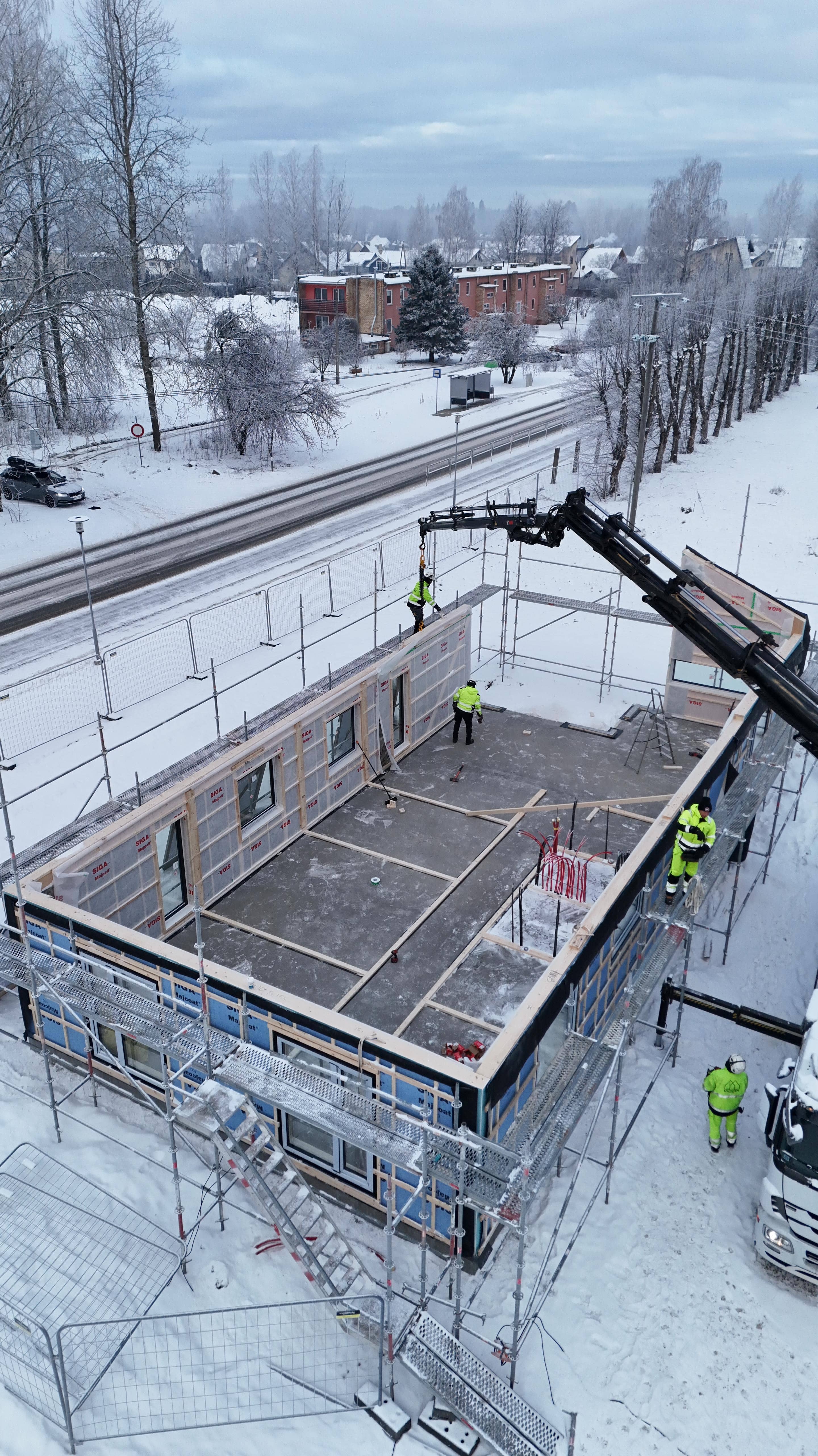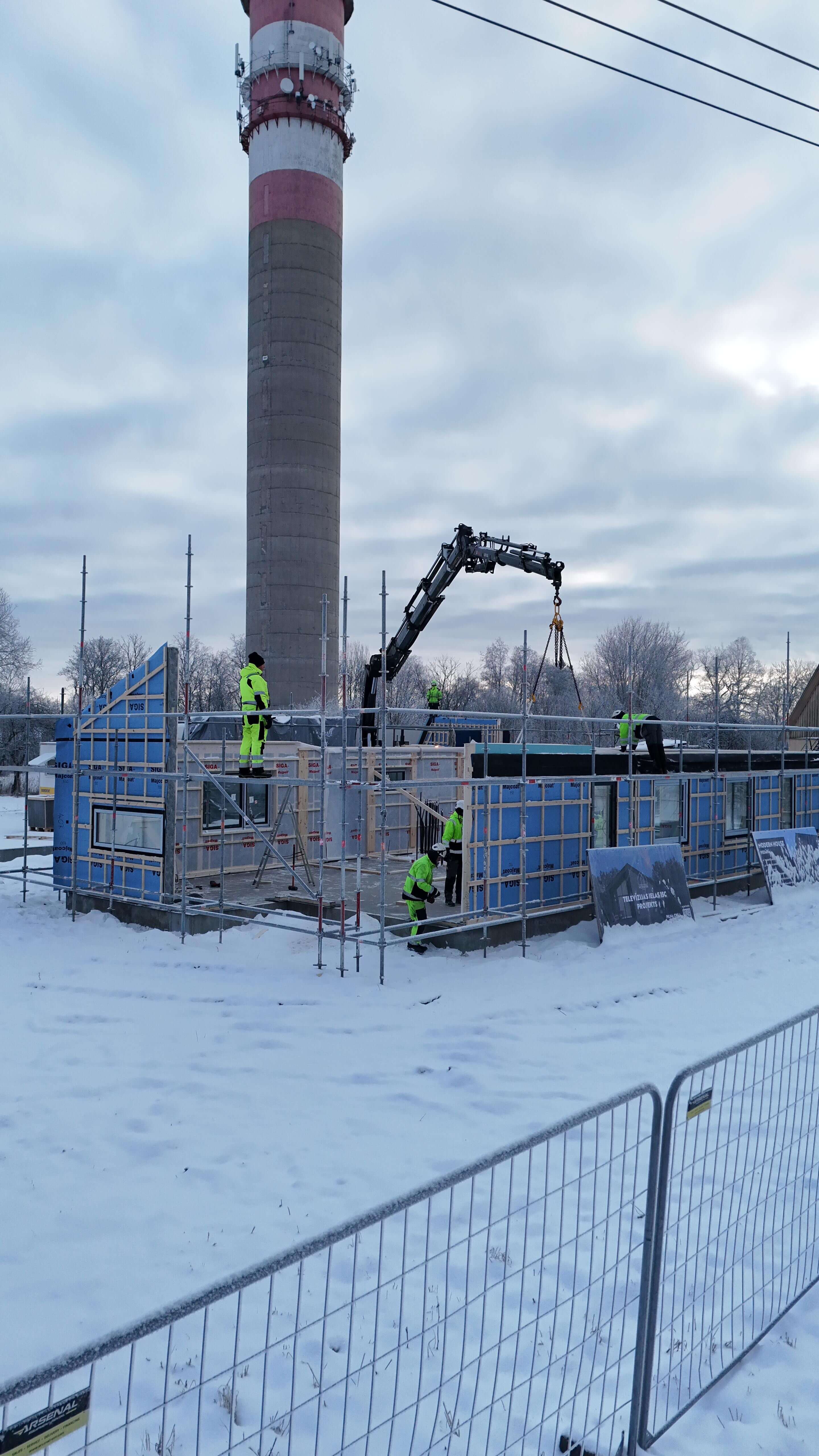 Dvīņu mājas montāžas process Televīzijas ielā, Sigulda