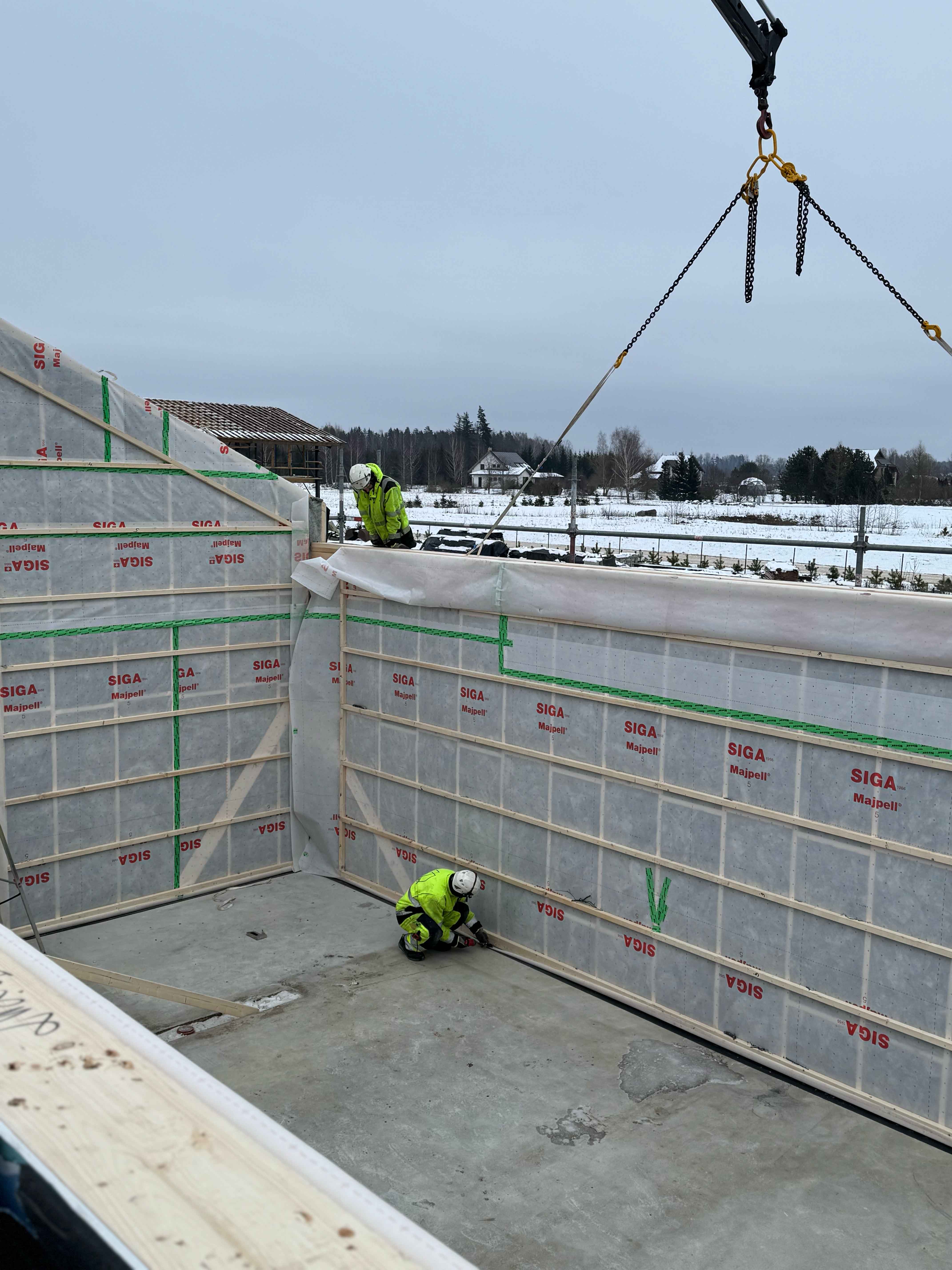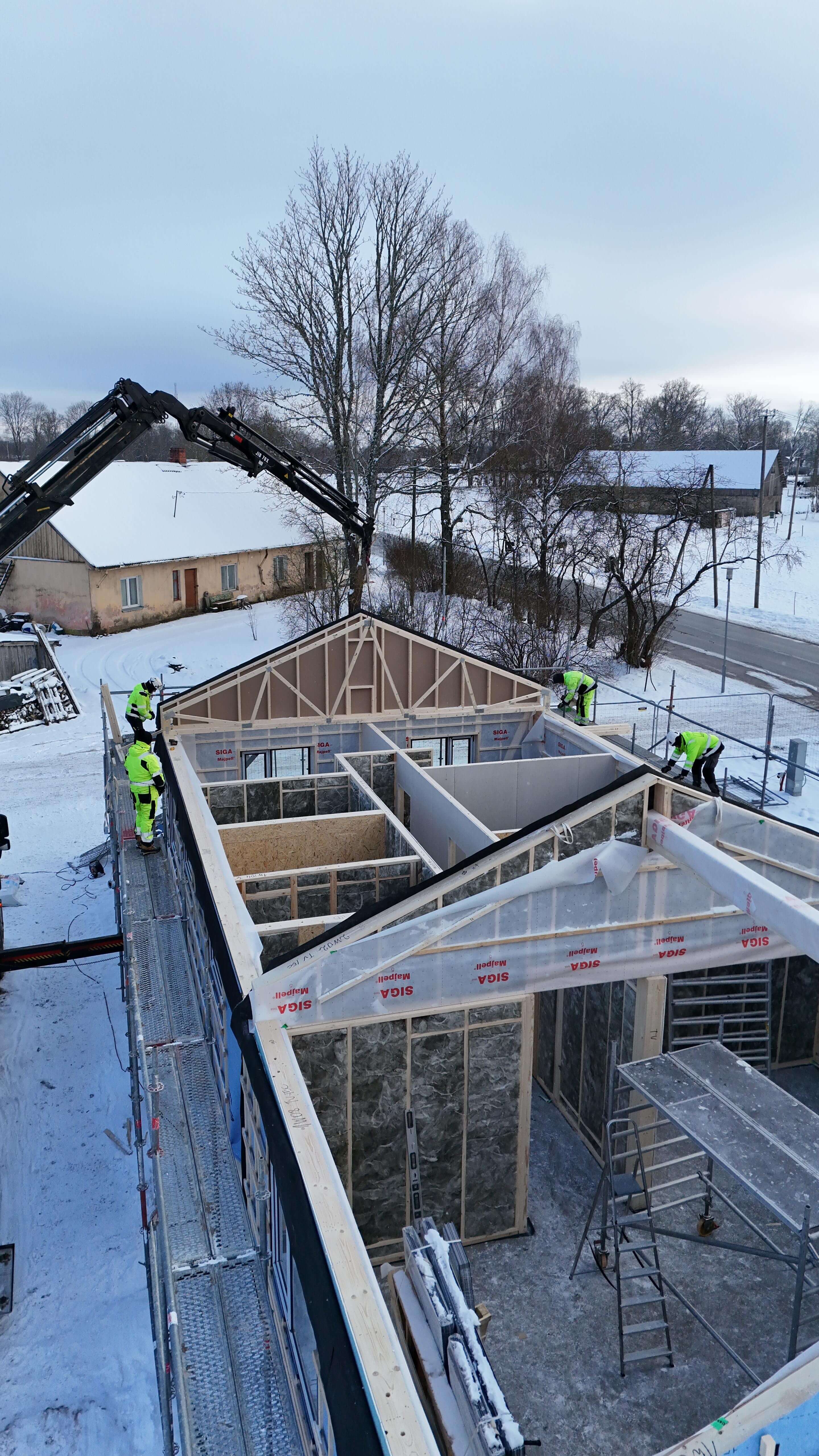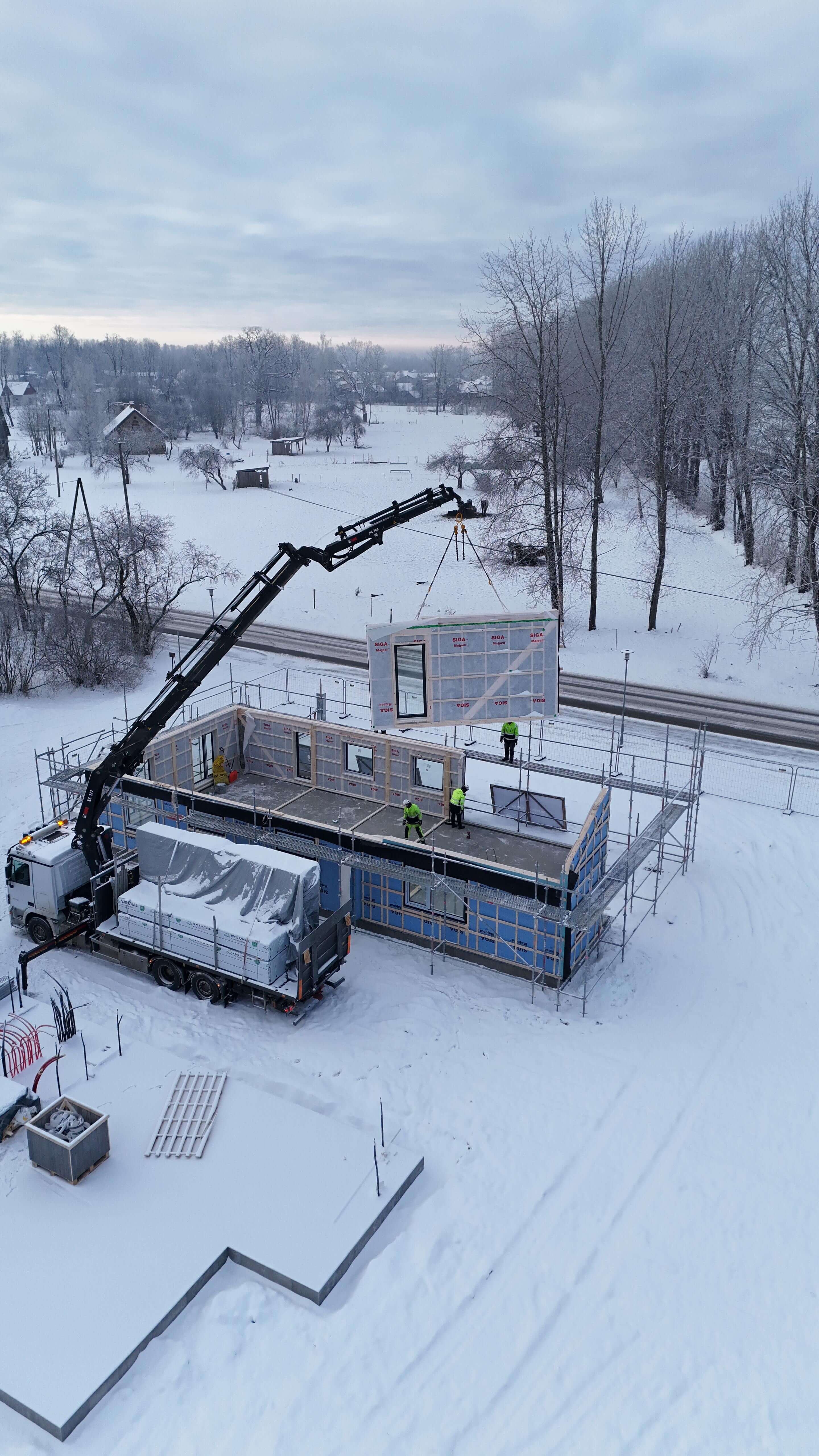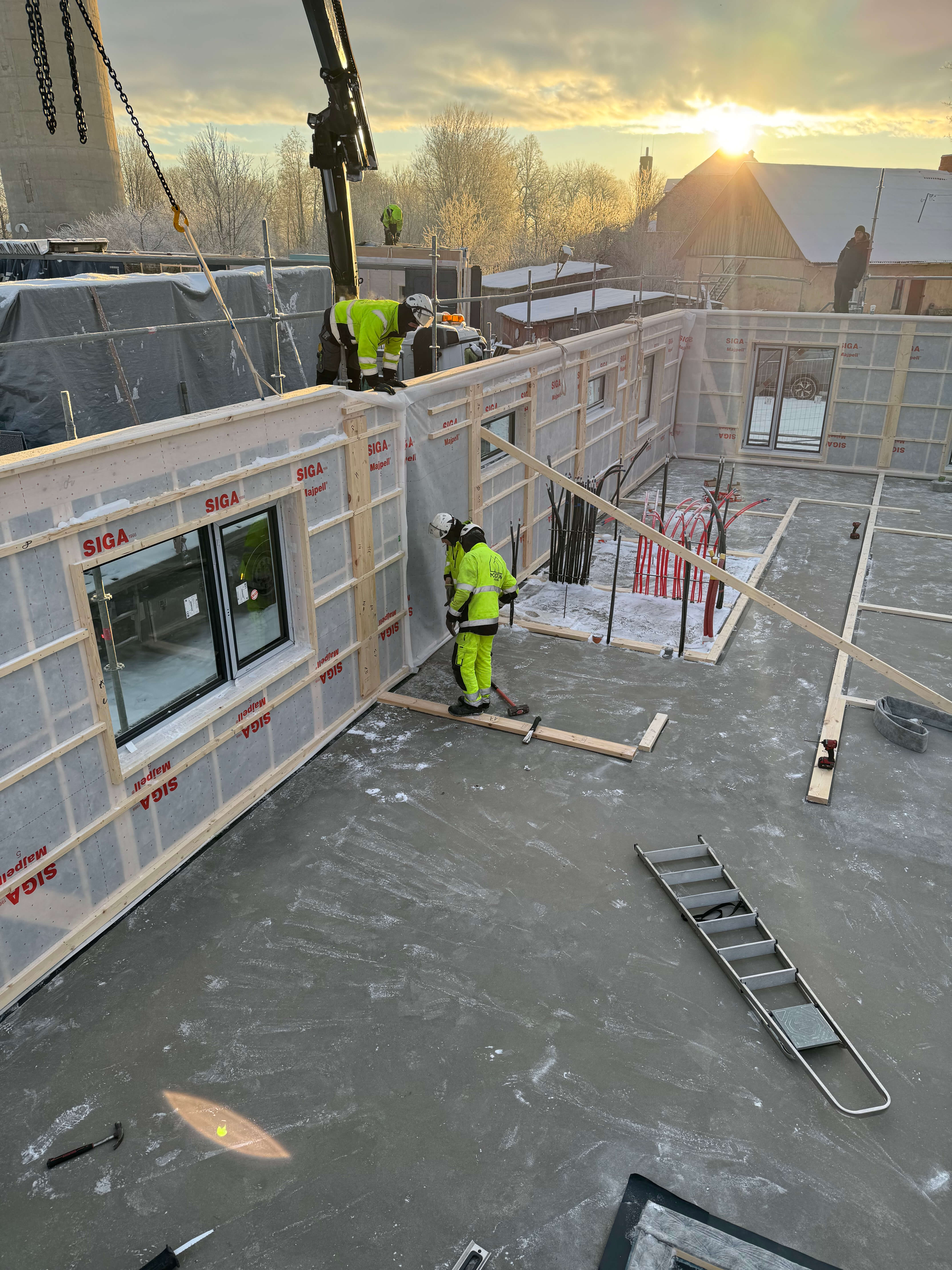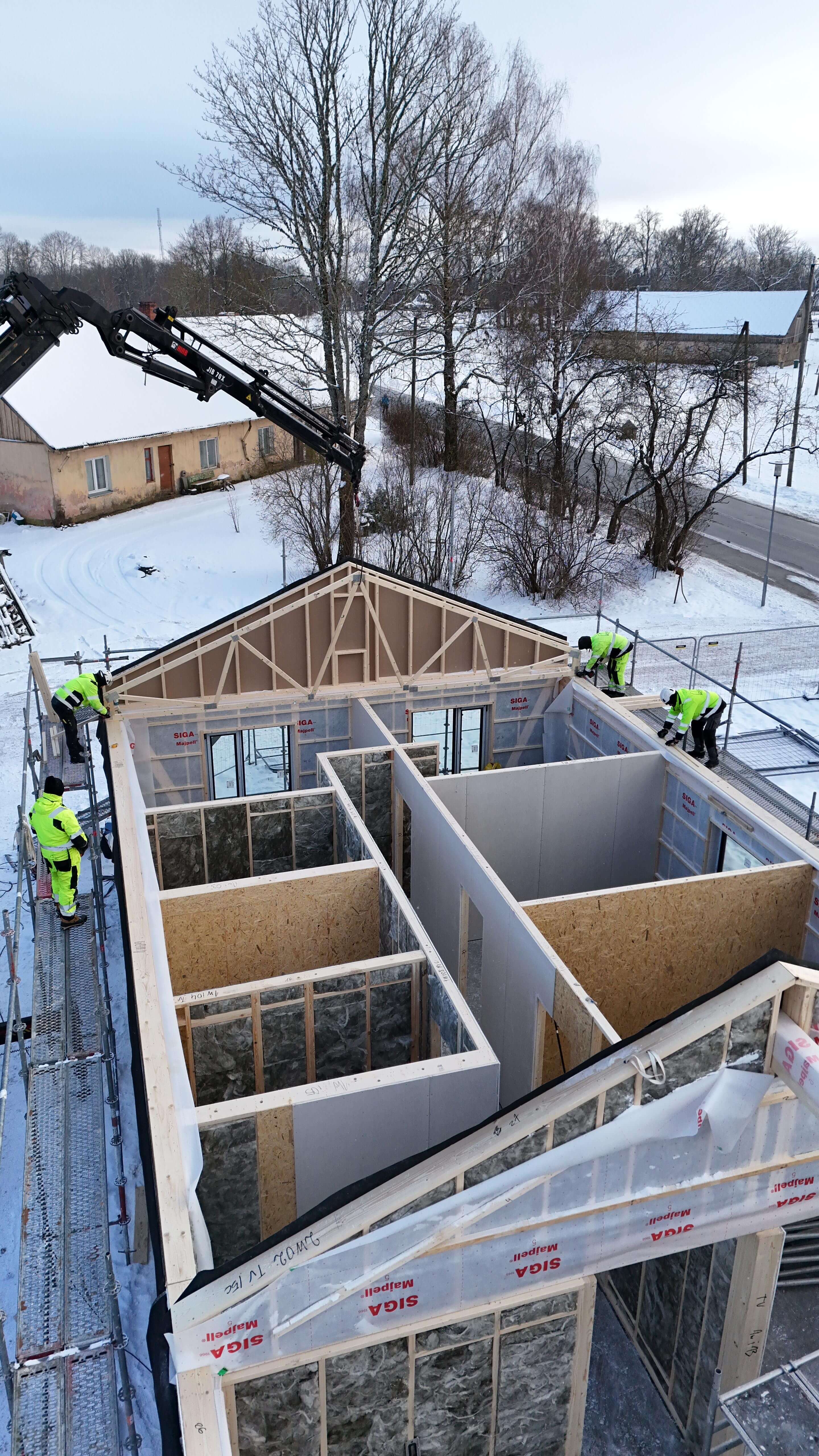 Dvīņu mājas montāžas process Televīzijas ielā, Sigulda