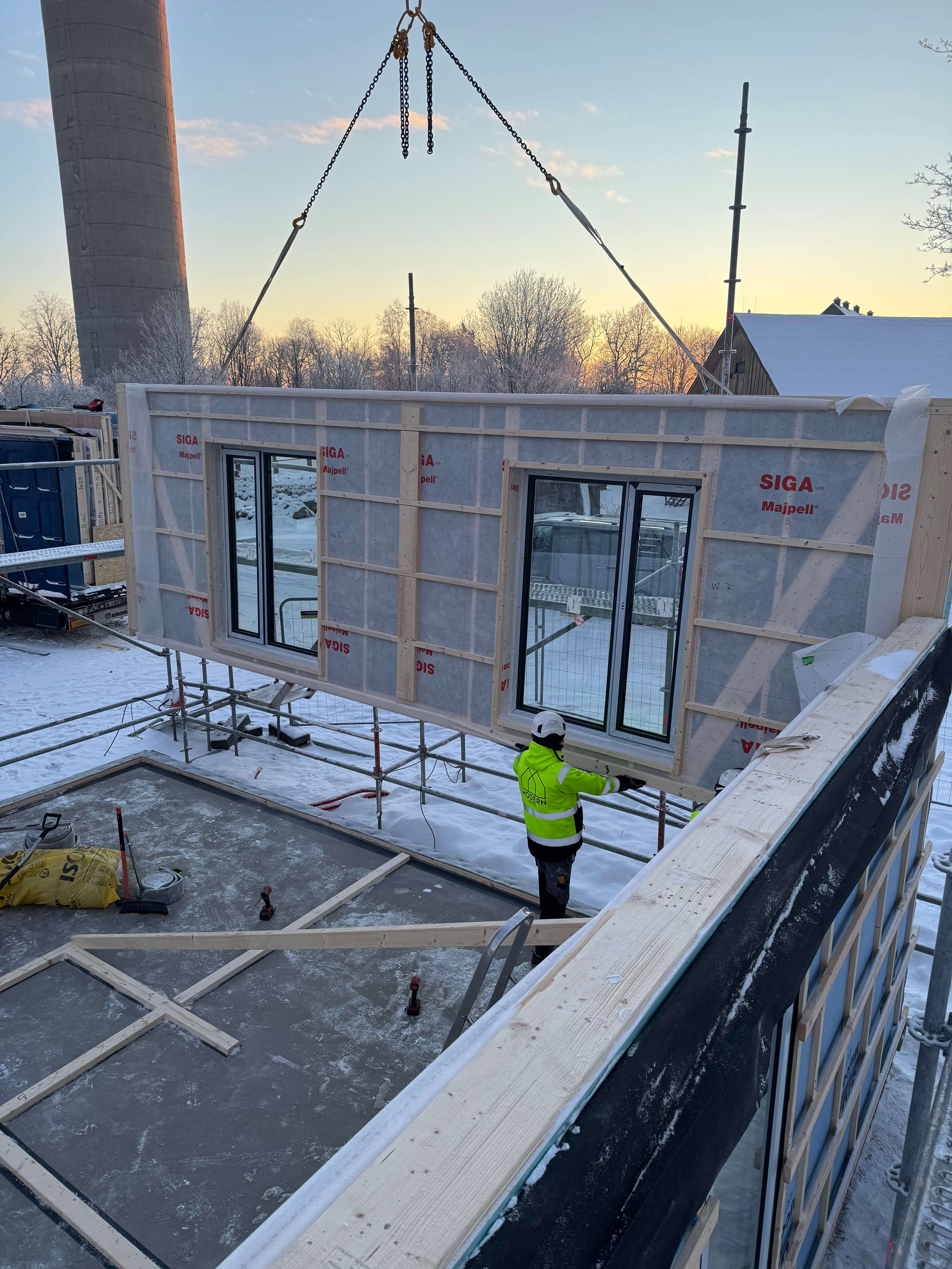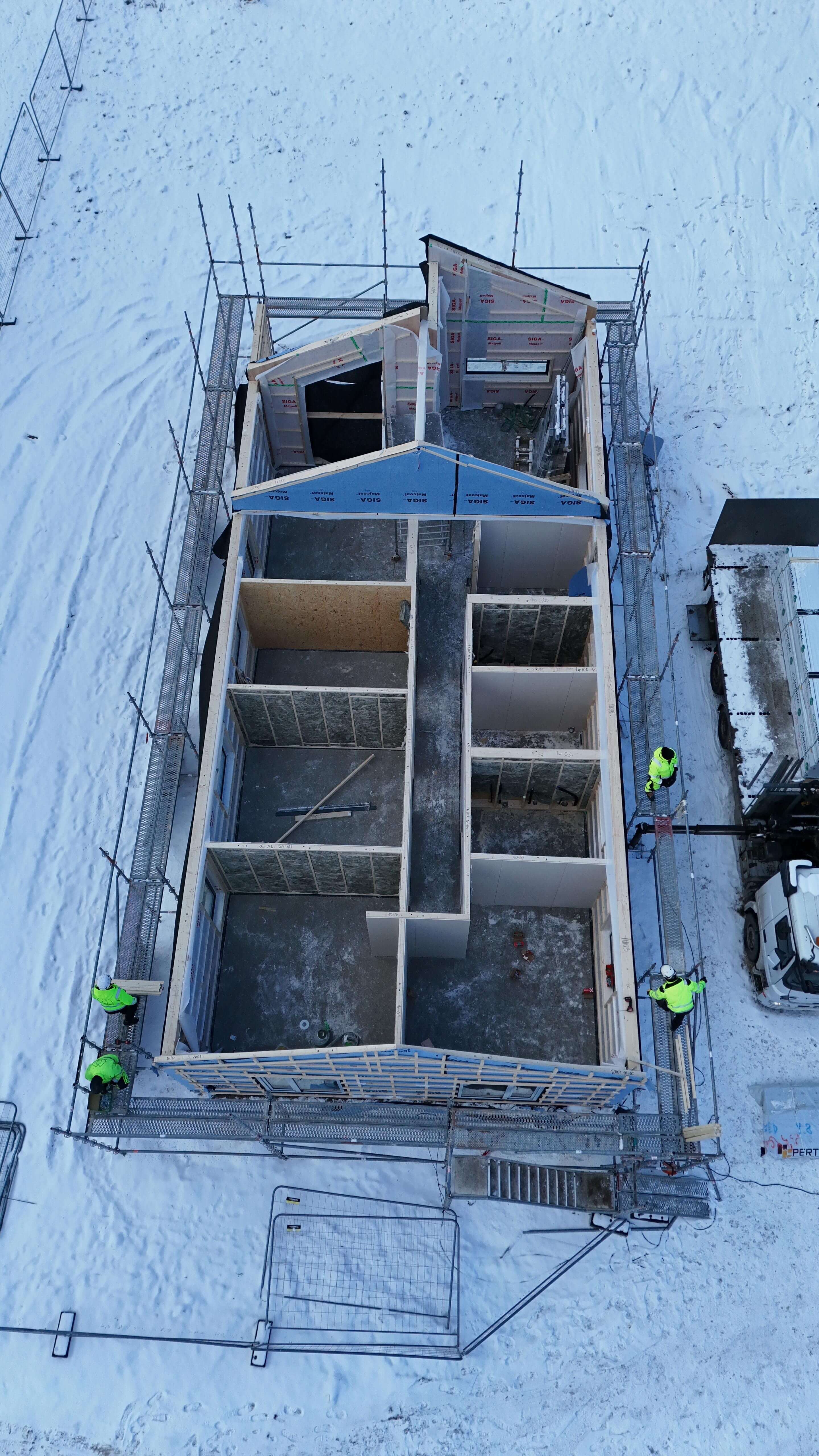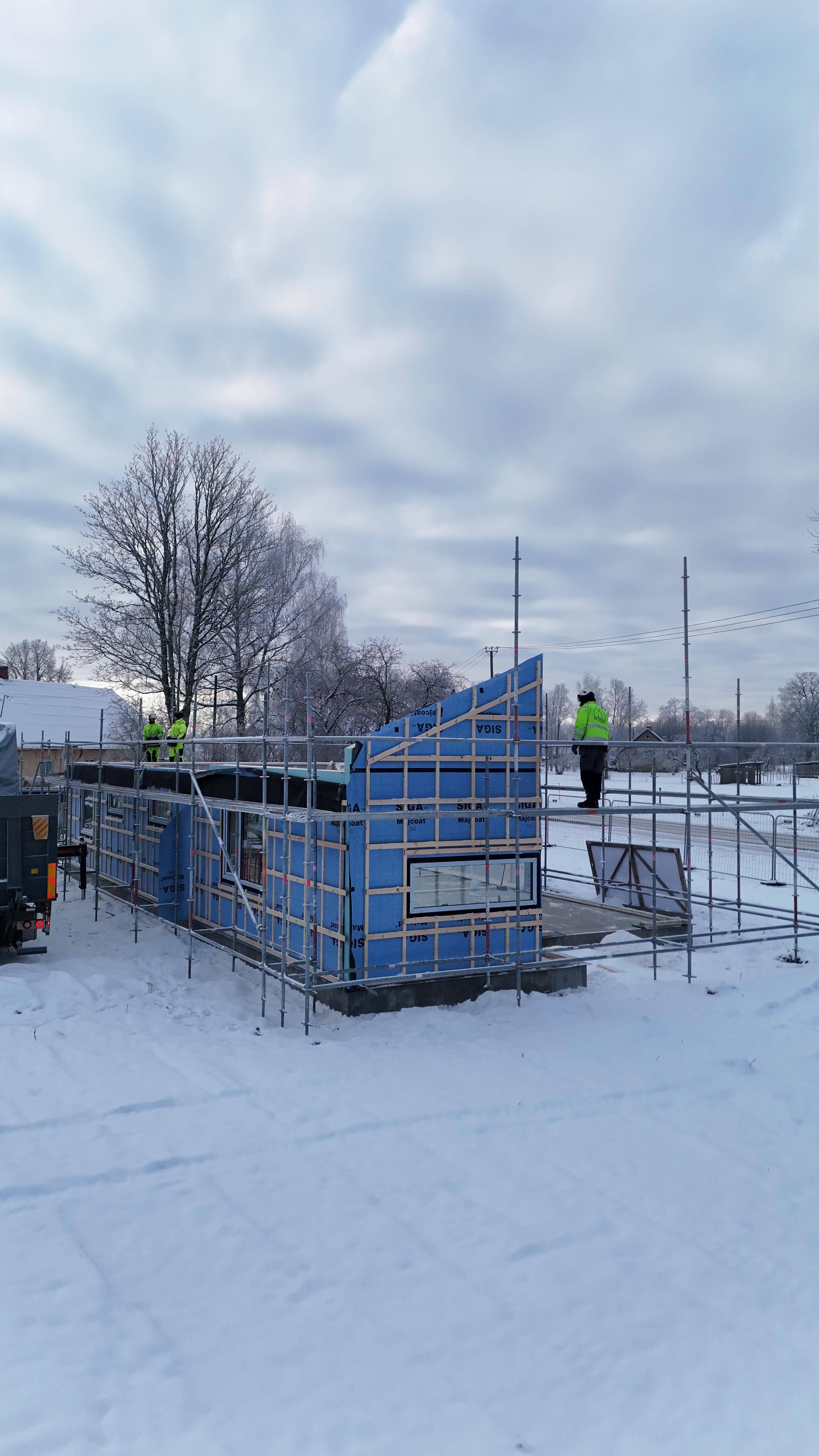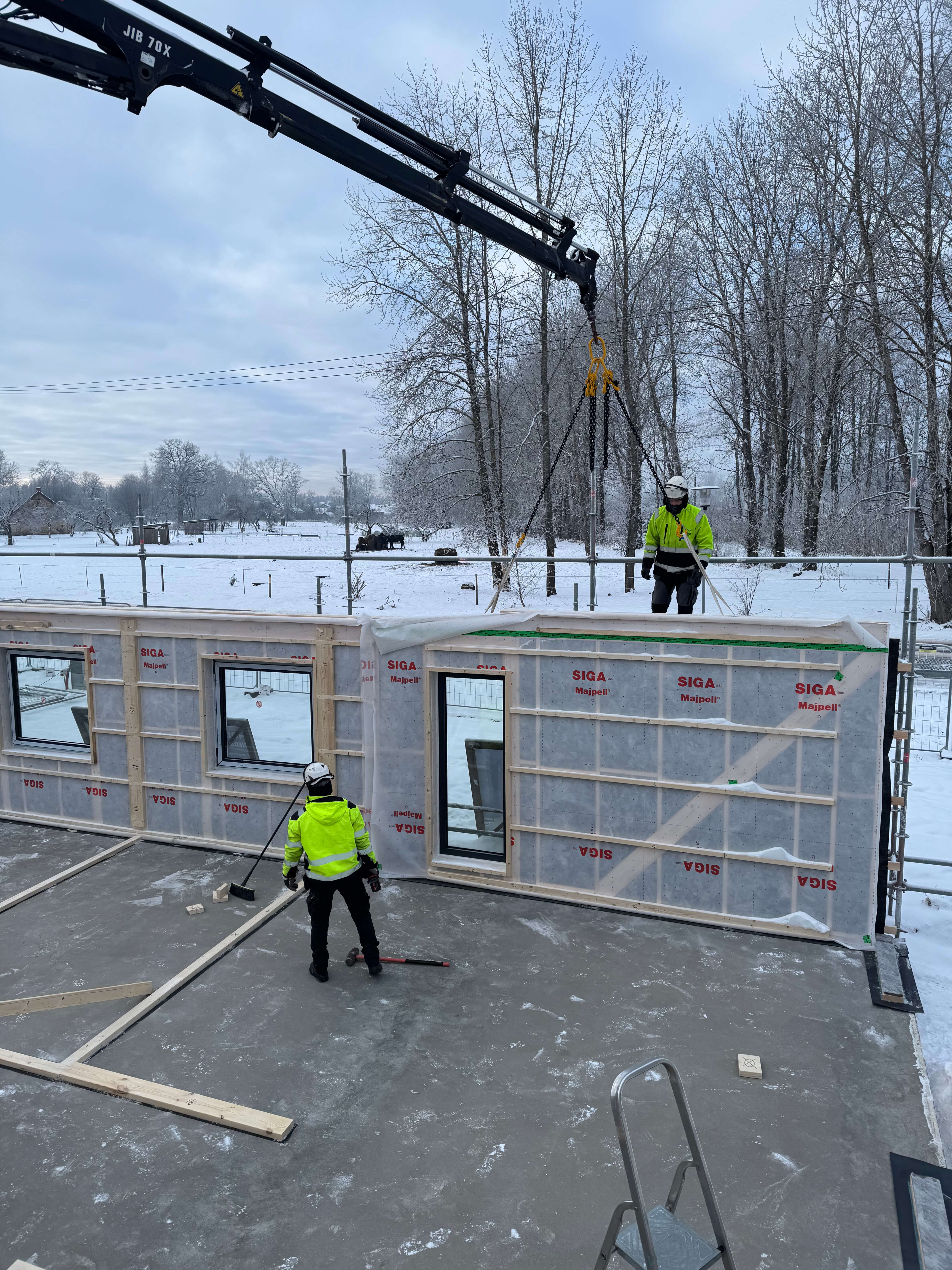Dvīņu mājas montāžas process Televīzijas ielā, Sigulda