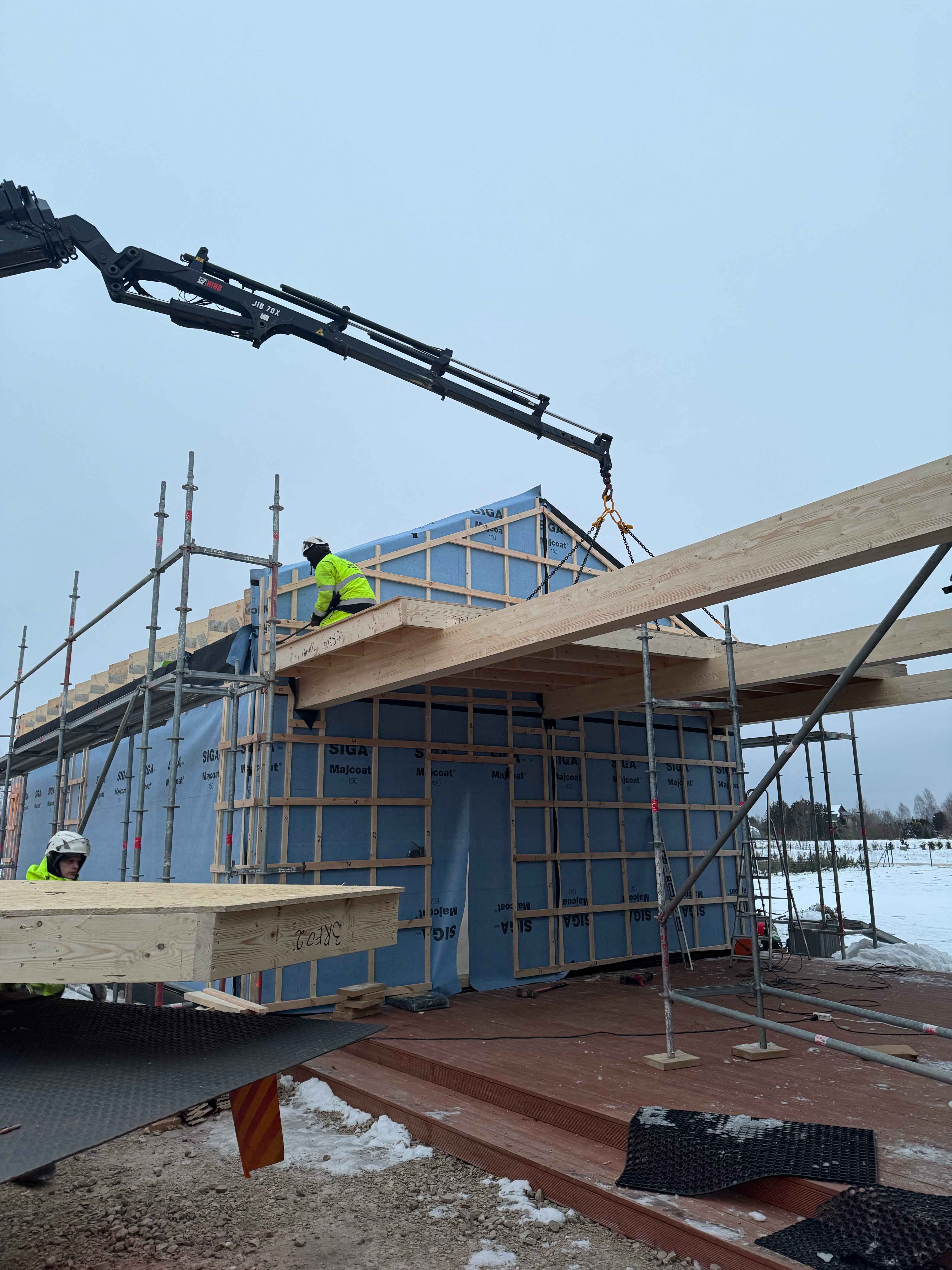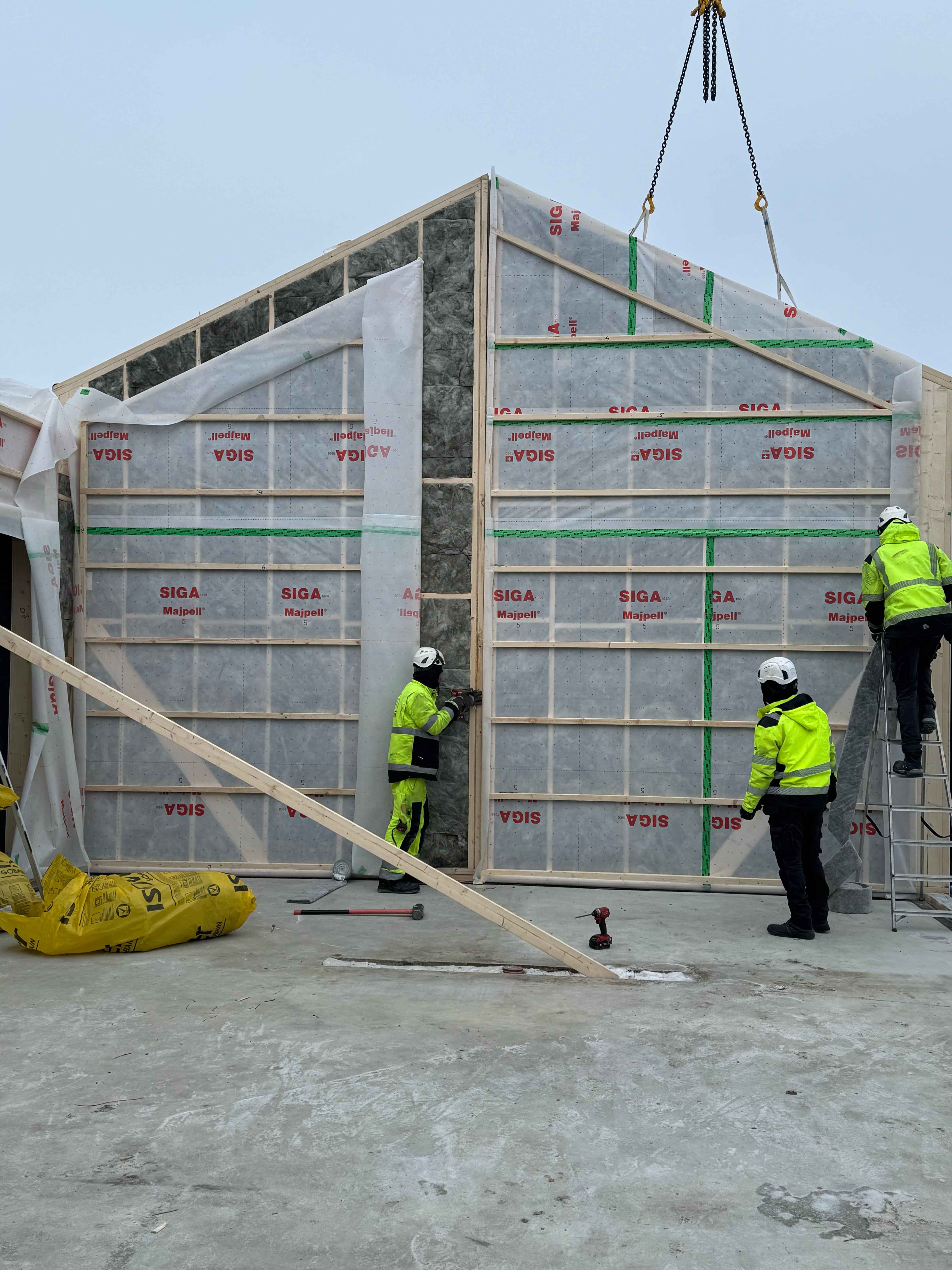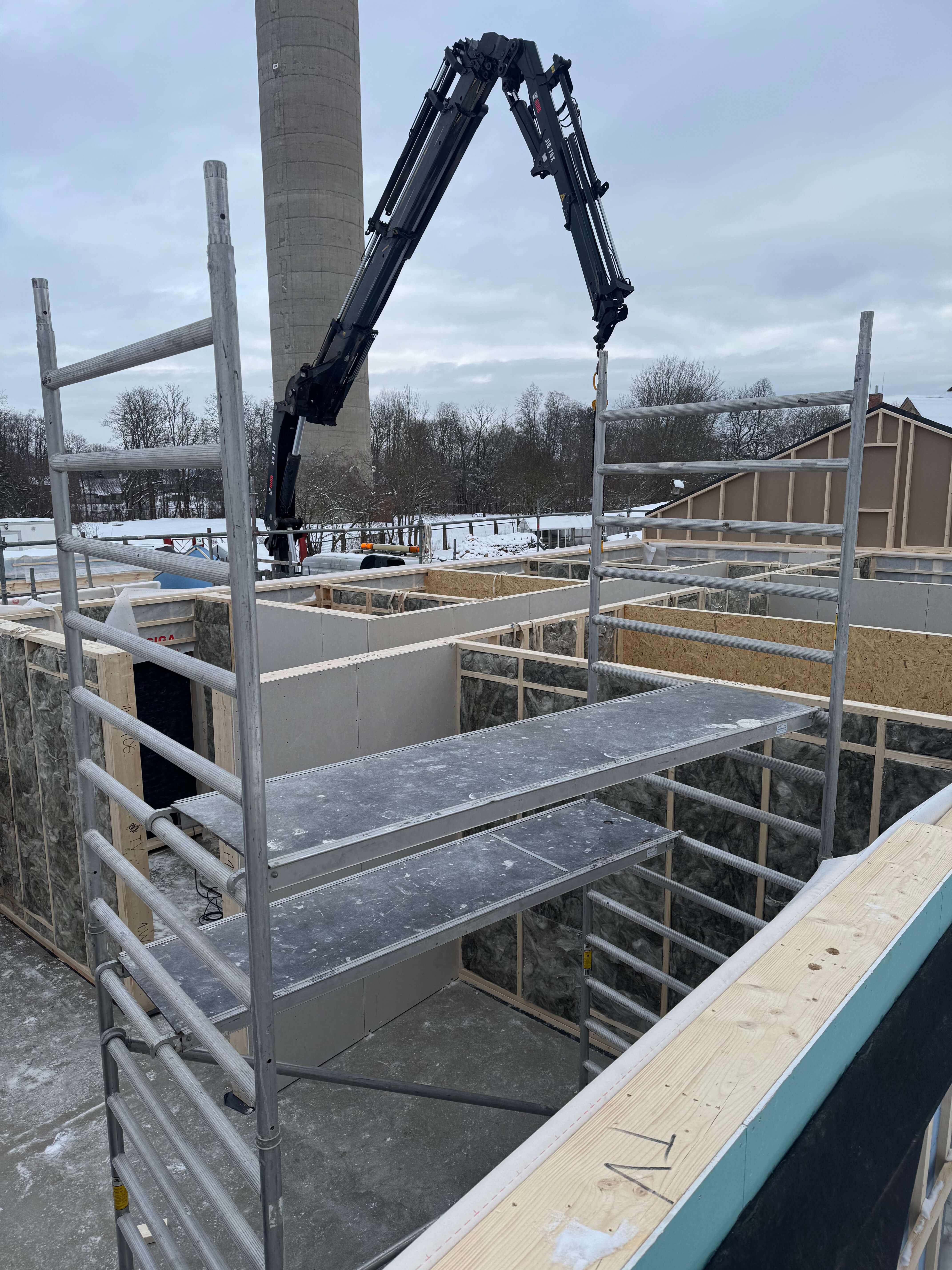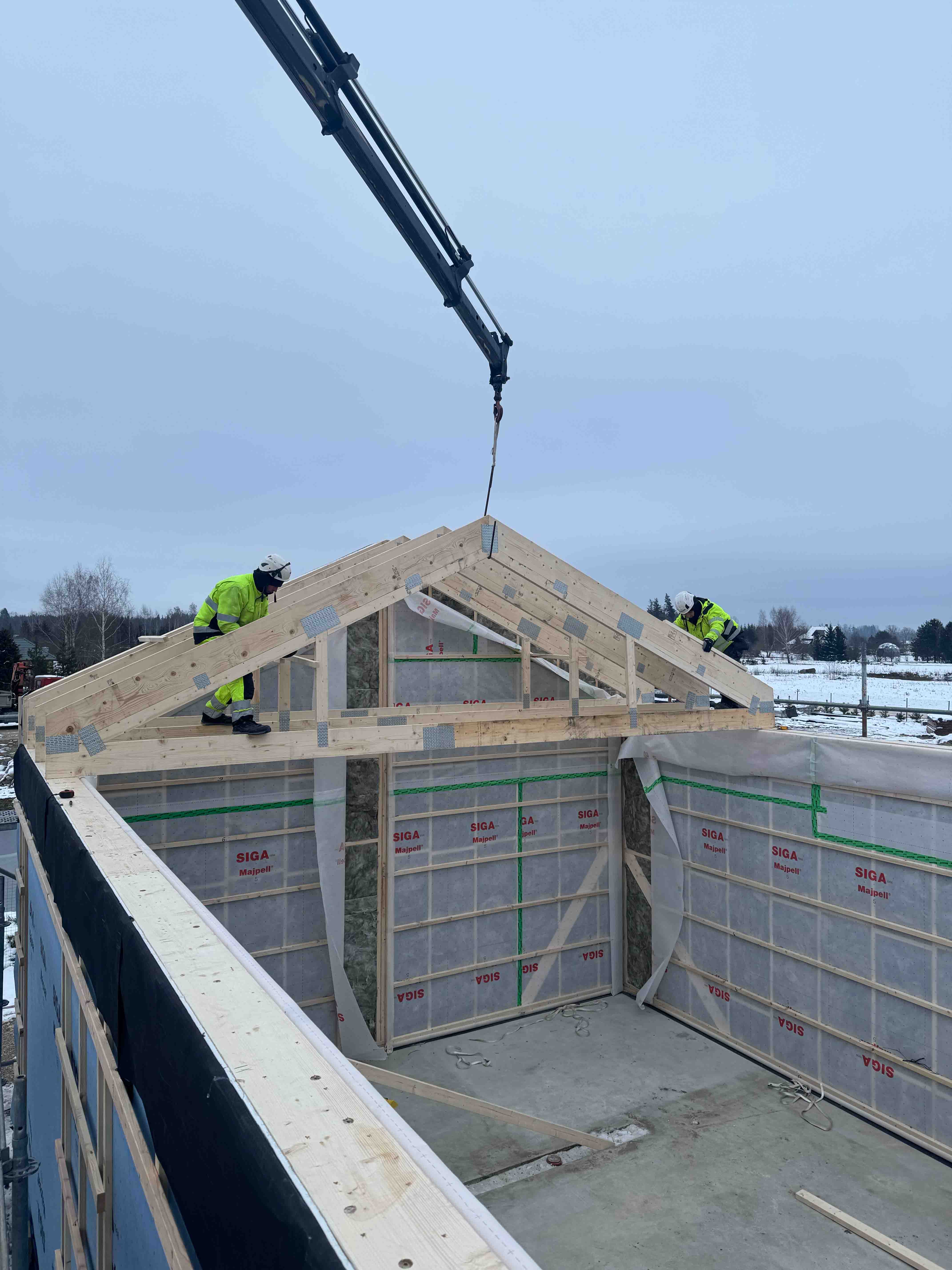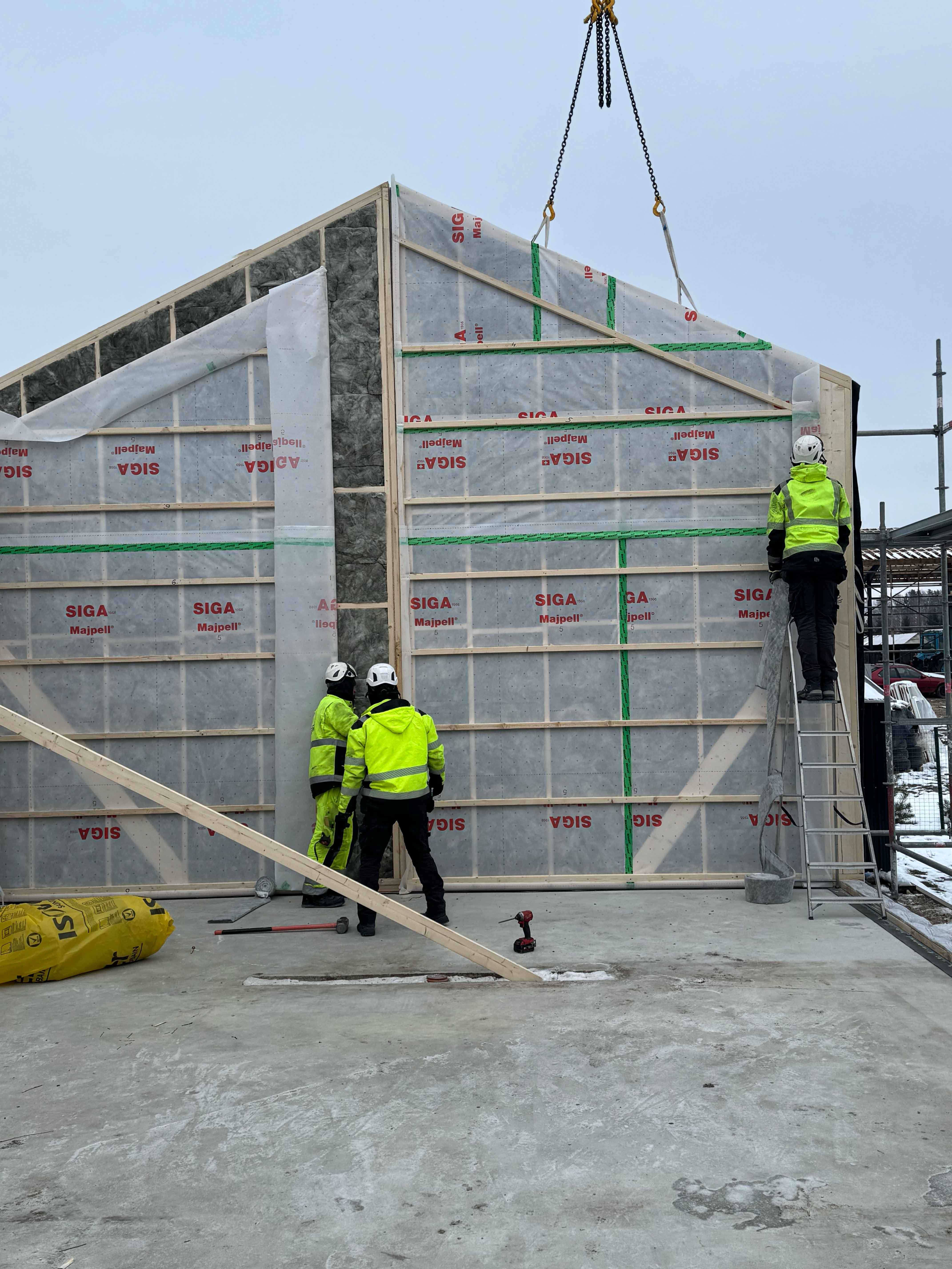 Dvīņu mājas montāžas process Televīzijas ielā, Sigulda