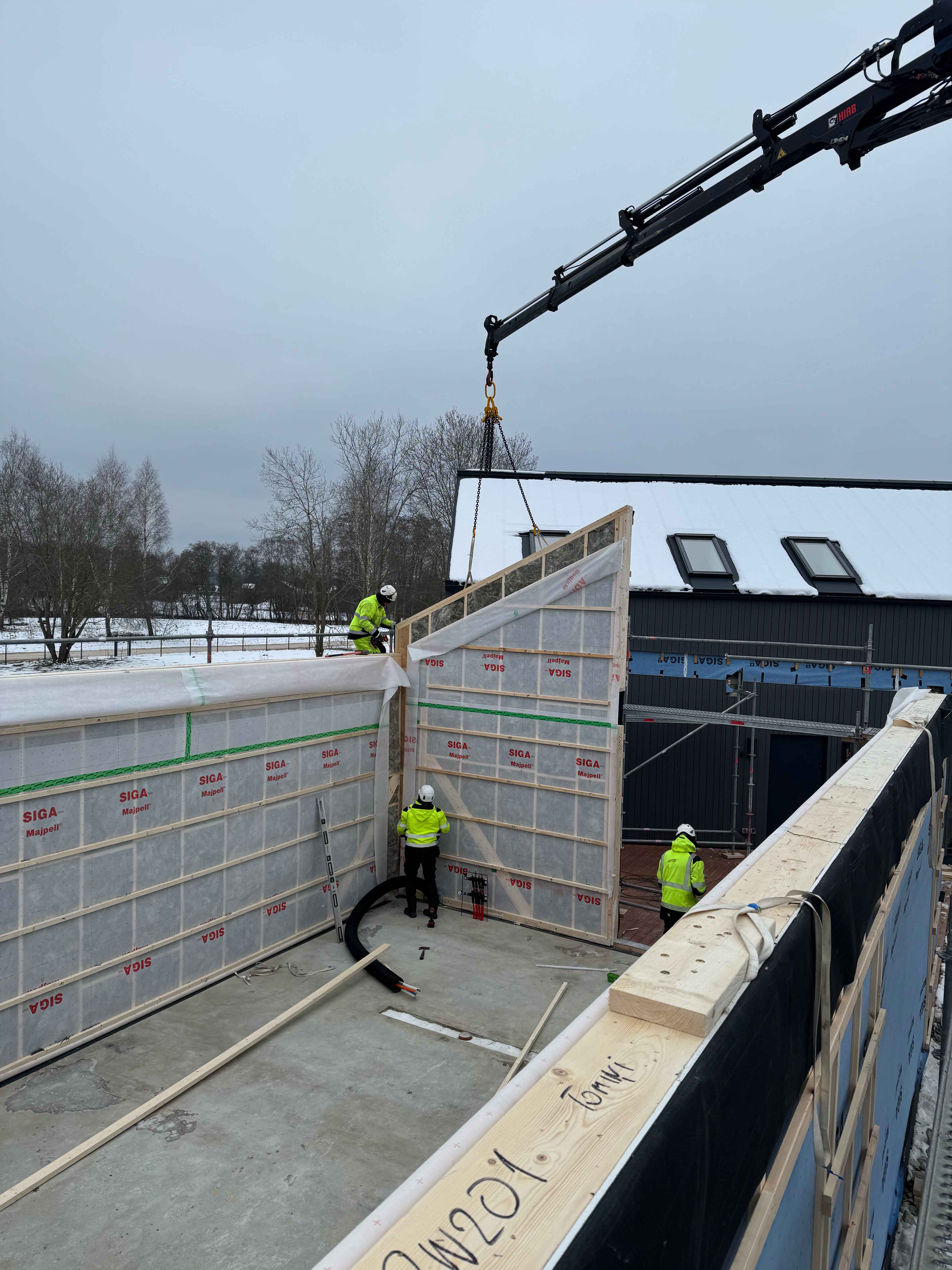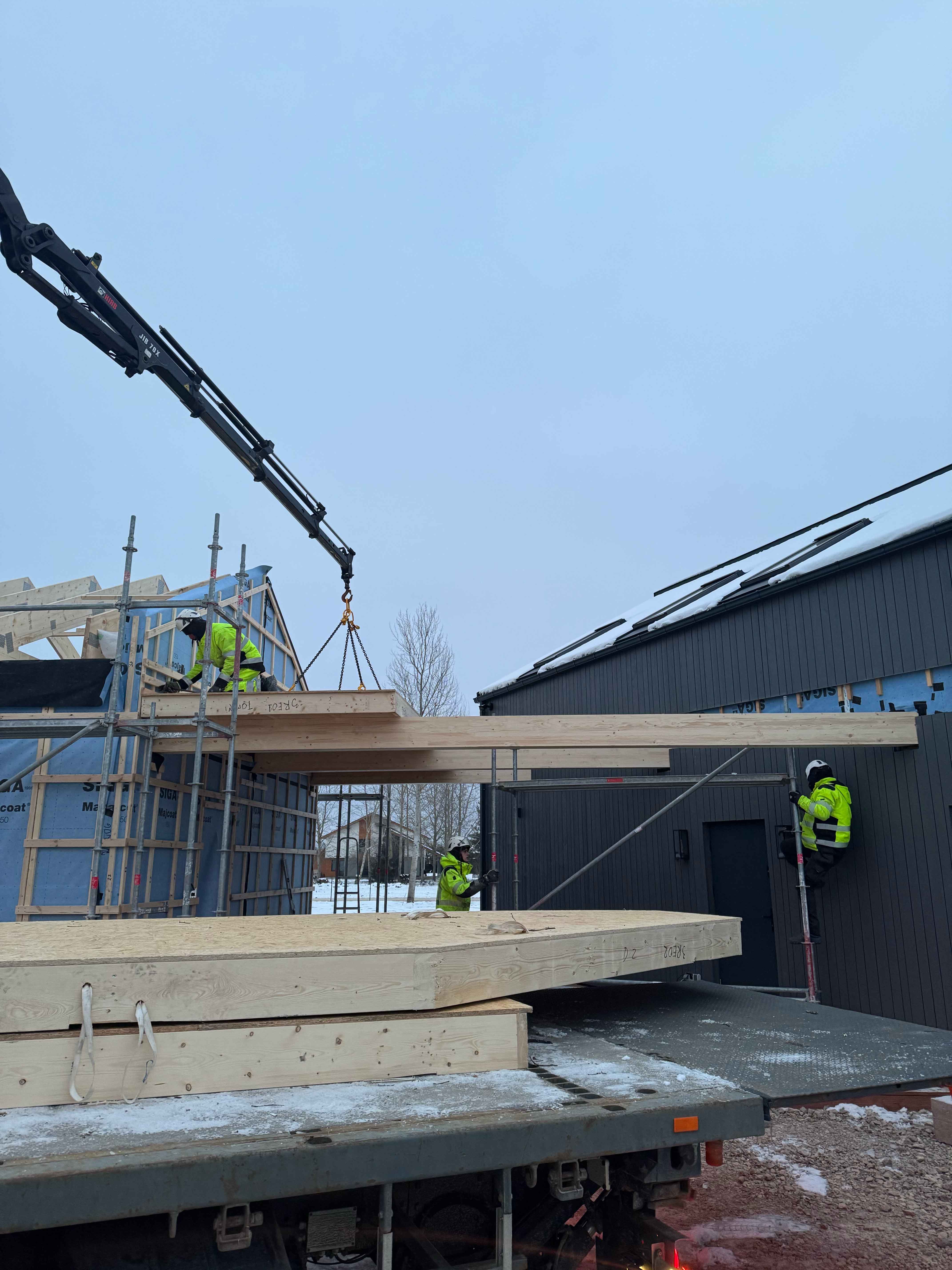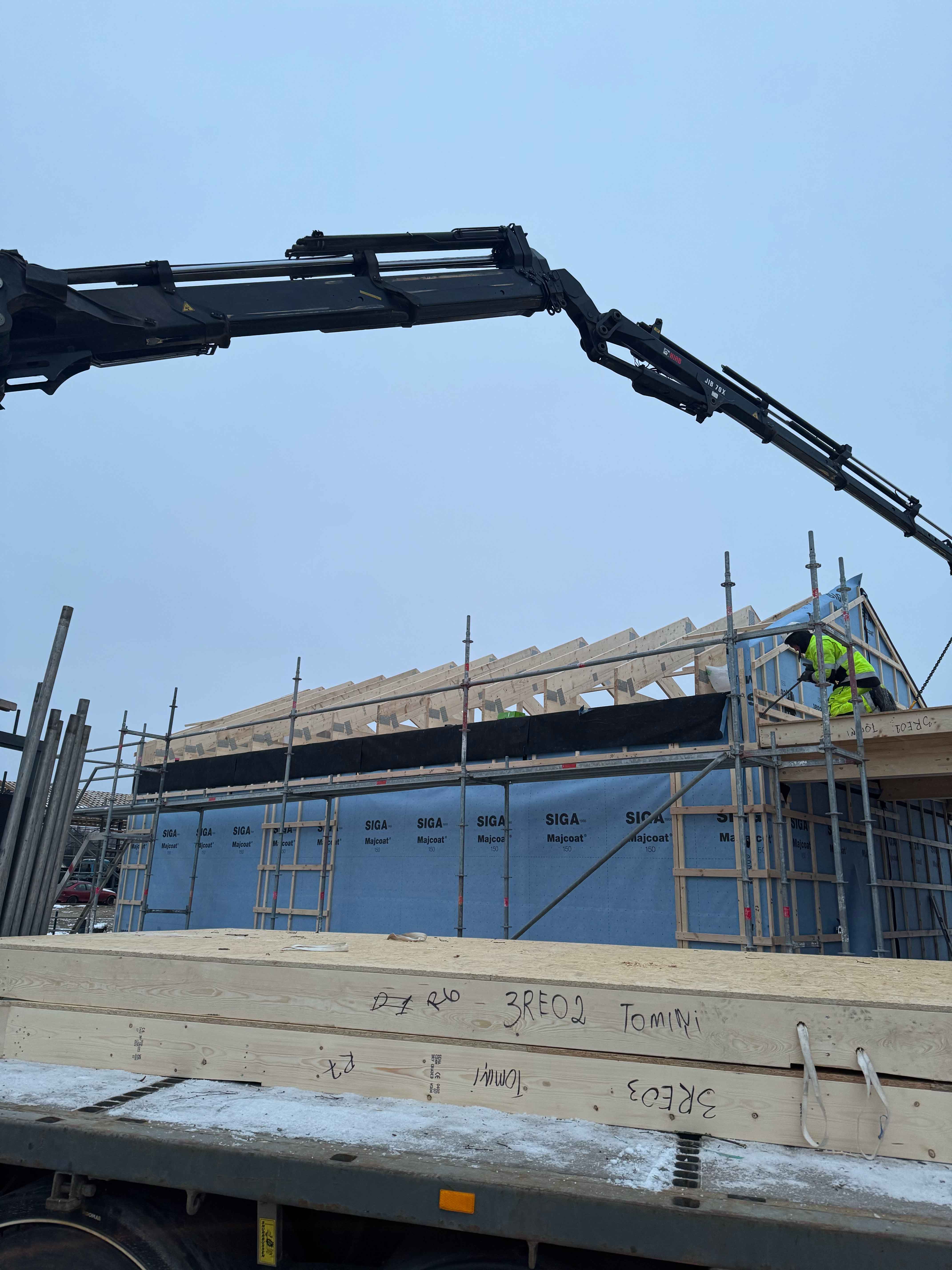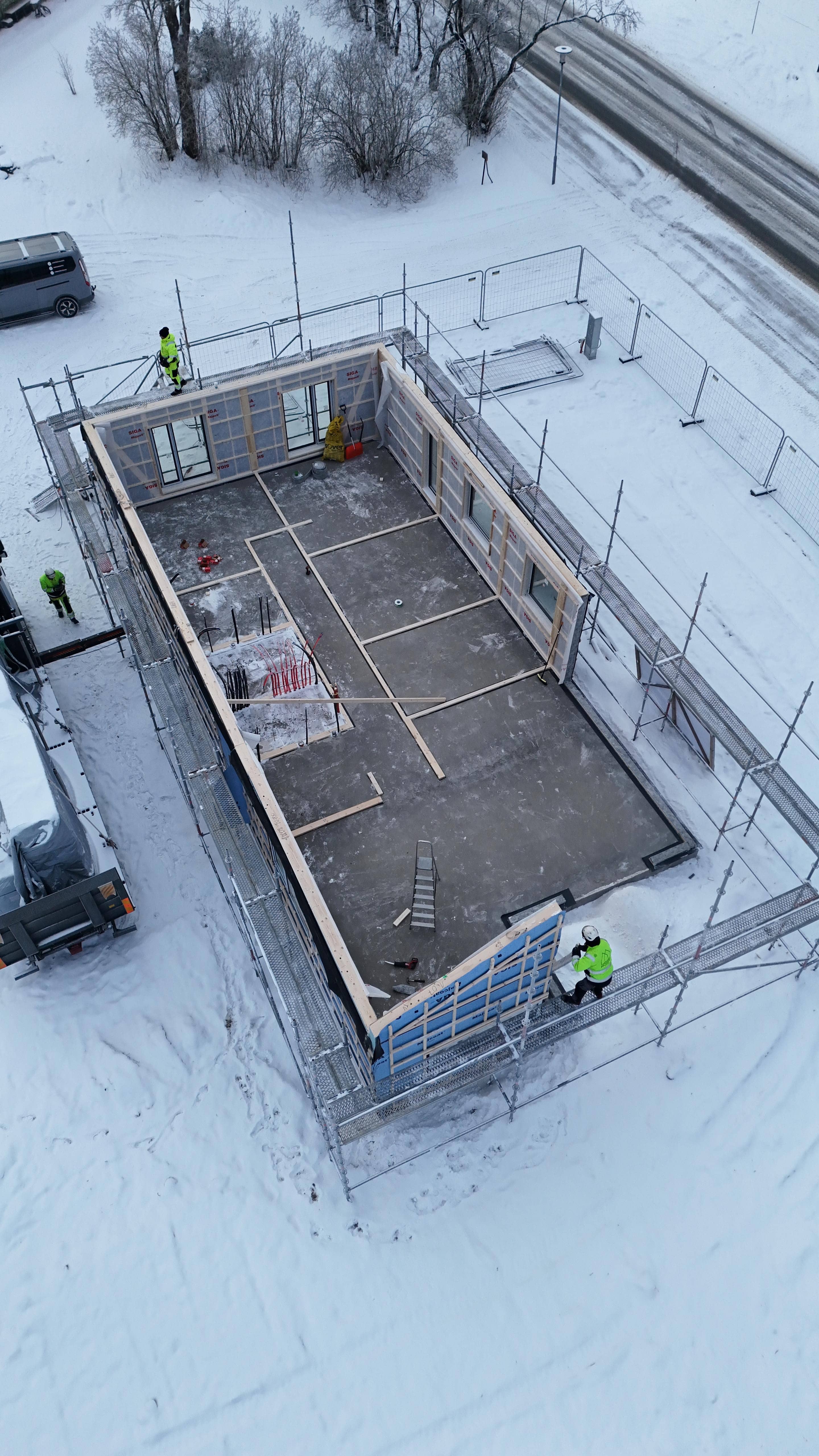 Dvīņu mājas montāžas process Televīzijas ielā, Sigulda