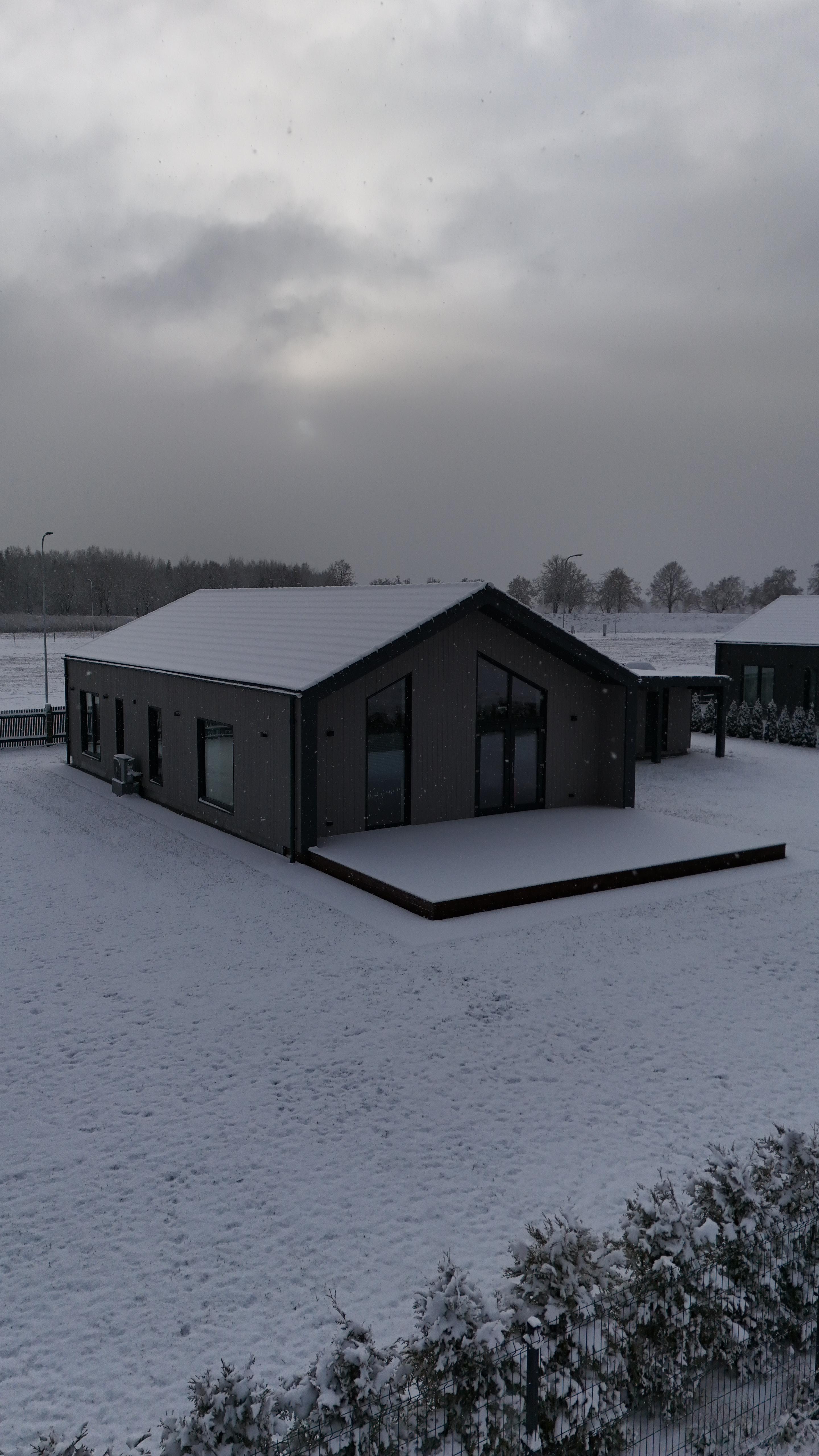 Projekts ir veidots ar praktisku, pārdomātu plānojumu un modernu vizuālo risinājumu. Mājas koncepts izstrādāts atbilstoši tam, lai ēka iegūtu A+ energoefektivitātes pakāpi, kas pozitīvi atsauksies uz zemām ikmēneša komunālajām izmaksām.