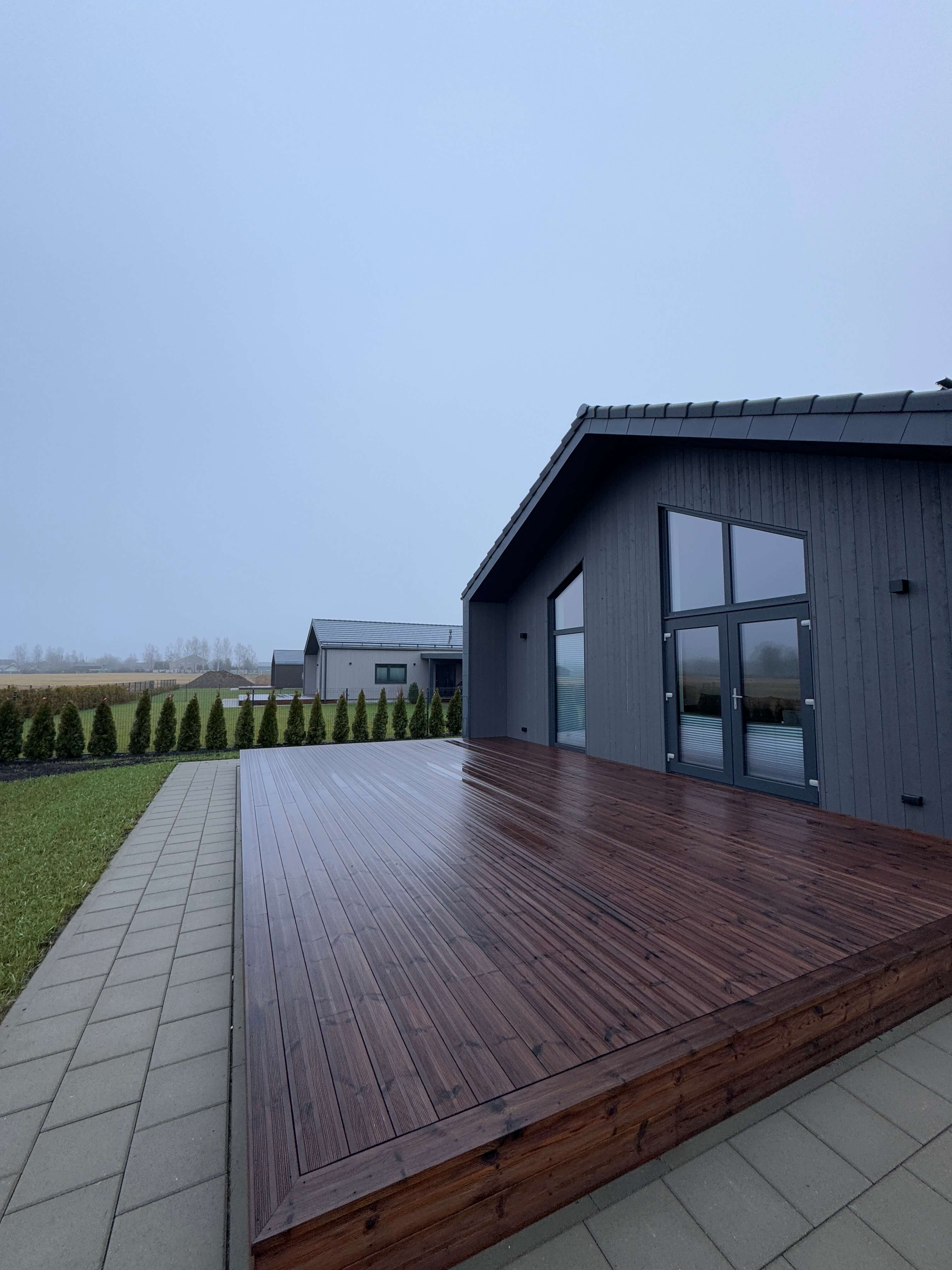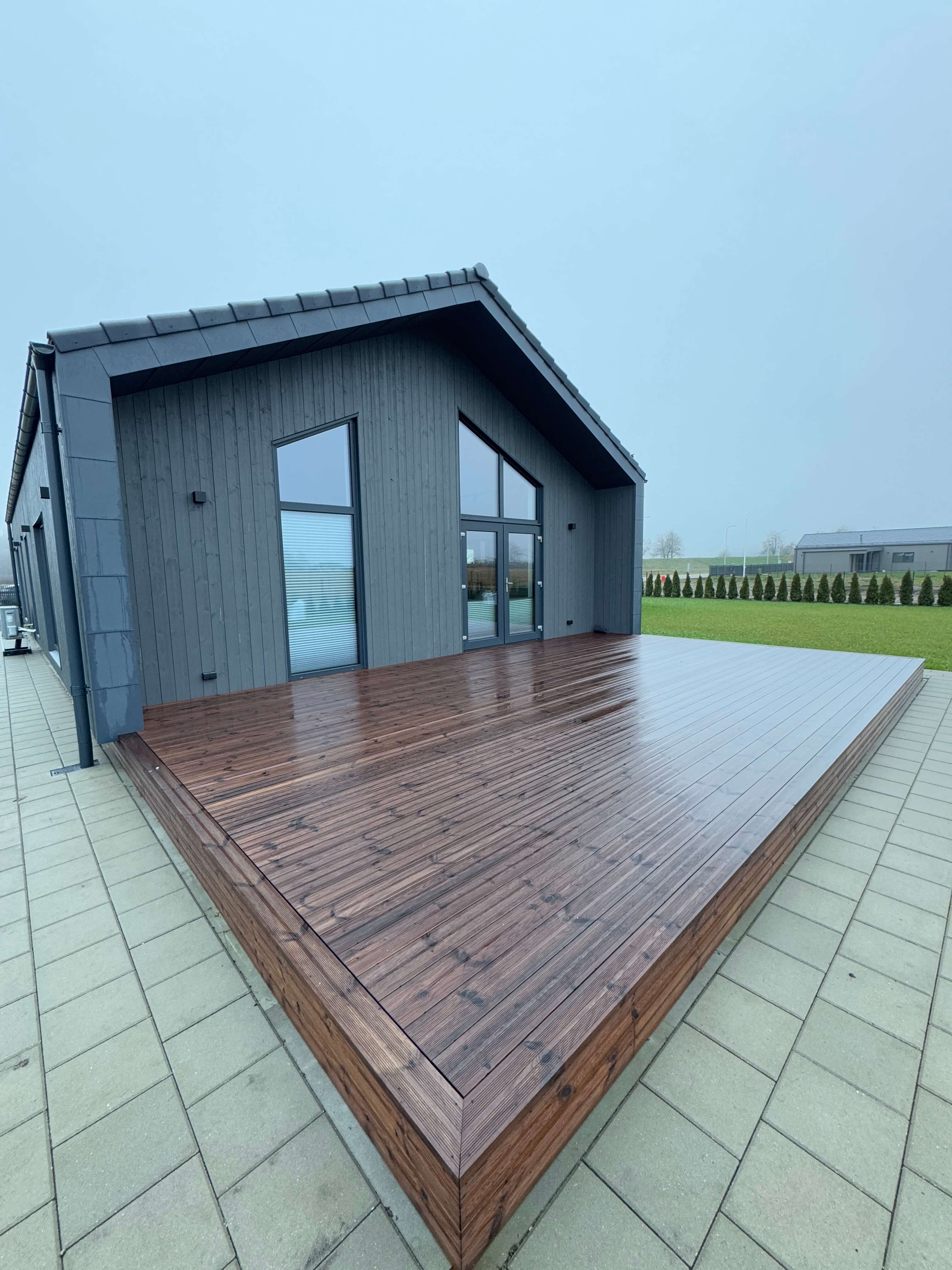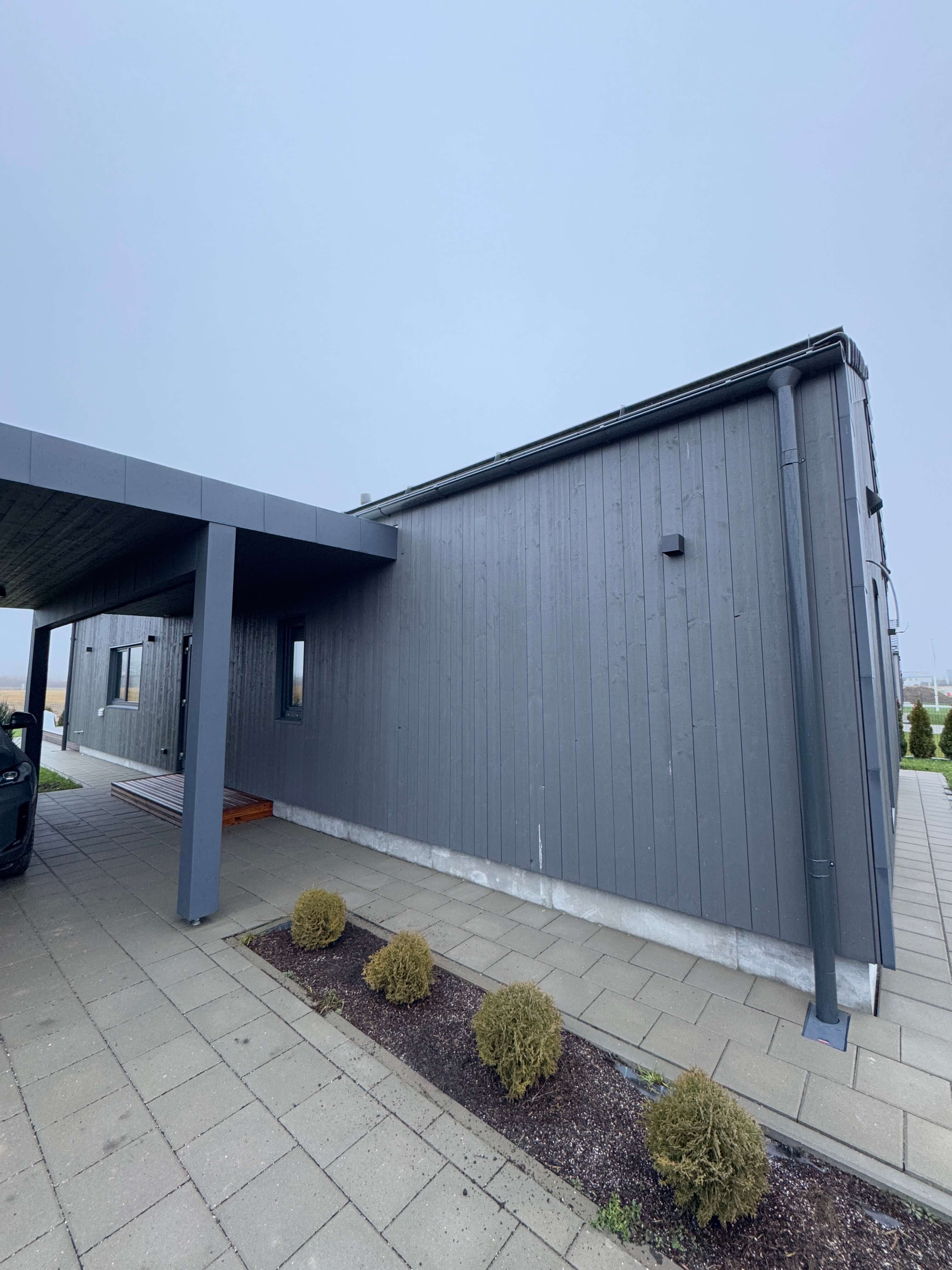 Vienstāvīgā privātmāja ir izstrādāta ar praktisku plānojumu, modernu dizainu un augstu energoefektivitāti, izmantojot kvalitatīvas koka karkasa tehnoloģijas, kas nodrošina zemas komunālās izmaksas un ilgtspējīgu risinājumu.